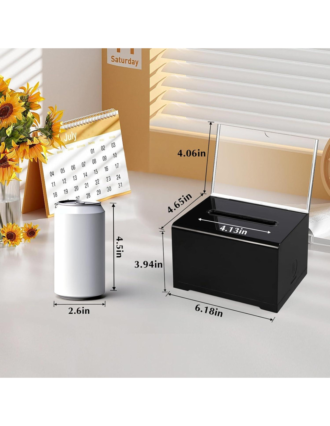 - [Paquete Incluido] Recibirás 1 paquete de cajas de donaciones acrílicas con 1 paquete de Soporte para Carteles Desmontable, la caja de sugerencias mide 15.7x11.7x9.9 cm, el soporte de cartel desmontable en la parte superior de la caja de votación tiene dimensiones de 15.7x10.2 cm, suficiente para satisfacer tus necesidades diarias. Consejos: Para evitar que la llave raye la superficie de la caja de lotería de plástico, colocamos la llave dentro de la caja. Cuando recibas el producto, abre la caja primero para obtener la llave.