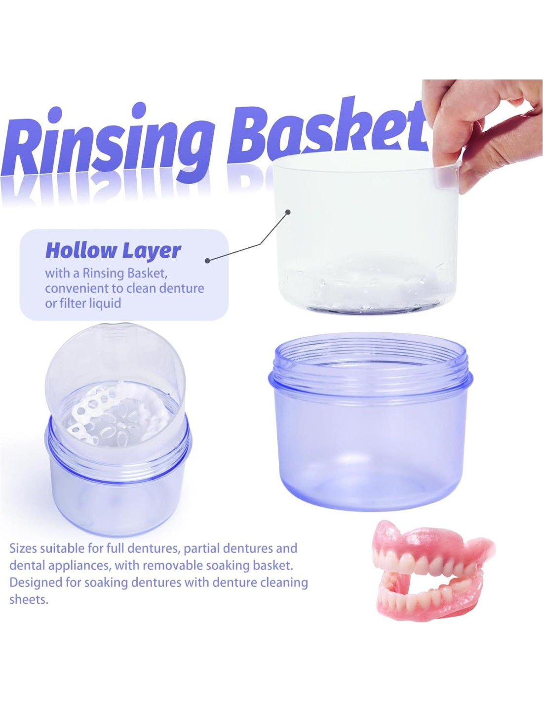 - DISEÑO HUMANIZADO: De acuerdo con las necesidades del usuario, hemos actualizado y mejorado las características funcionales de durabilidad, seguridad, impermeabilidad, belleza y portabilidad. Es más grande que las típicas tazas de dentaduras en el mercado, por lo que no tienes que preocuparte de que la caja de baño de dentaduras sea demasiado pequeña para remojar completamente. Además, también viene con un mango de silicona que se puede girar, lo que facilita llevarla y moverla.