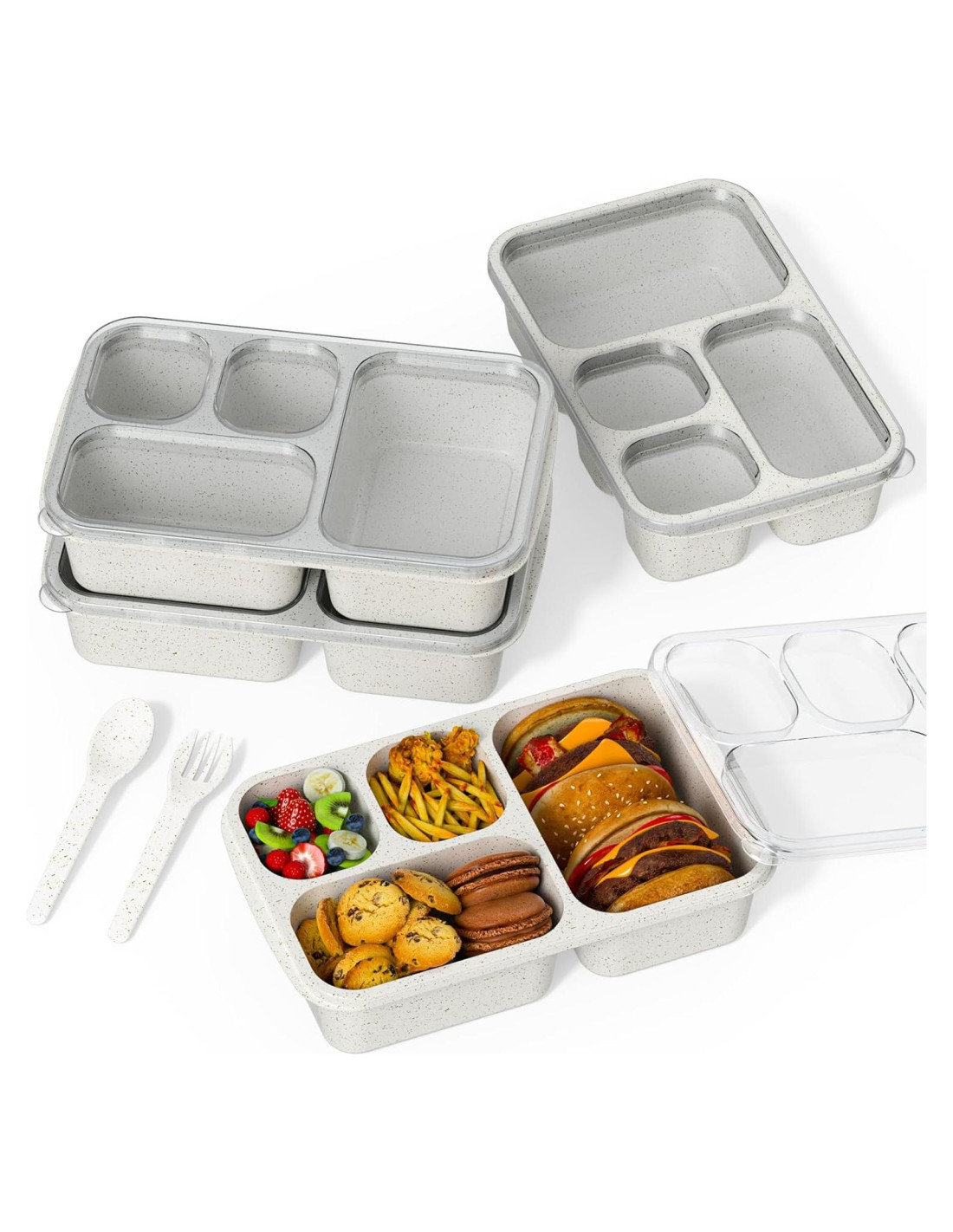 - [Diseño Inteligente y Práctico] Con una tapa transparente y un exterior mate, estos contenedores de almuerzo son elegantes, duraderos y fáciles de usar. El acabado mate ofrece resistencia al deslizamiento, mientras que el interior suave asegura una limpieza rápida. Estas cajas de almuerzo no son a prueba de fugas, pero funcionan perfectamente para snacks secos y alimentos sólidos. [Sin complicaciones y fáciles de usar.]