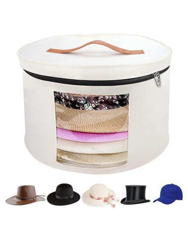 - Fácil de Almacenar y Llevar: La bolsa de almacenamiento de la caja de sombrero se puede aplastar cuando no está en uso, de modo que ocupa muy poco espacio. Además, es ligera, fácil de transportar y se puede colocar en cualquier lugar incluso cuando está llena de sombreros.