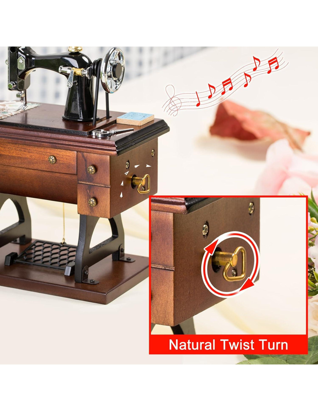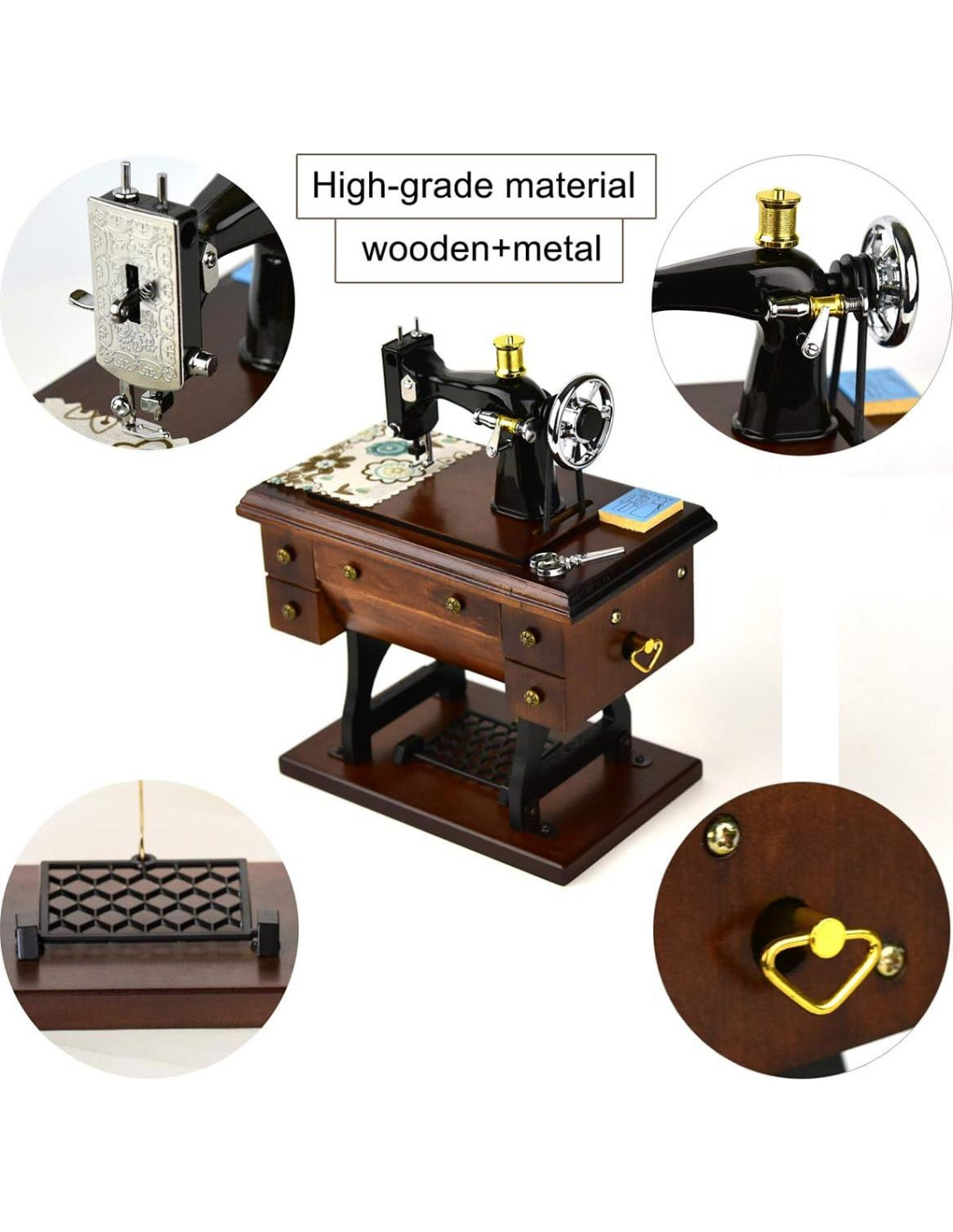 - CAJA DE MÚSICA DE MÁQUINA DE COSER: El diseño único de la mini caja de música de máquina de coser vintage trae una melodía melodiosa de la canción y crea un buen ambiente en el hogar, sala de costura, y traerá de vuelta los buenos recuerdos del pasado.