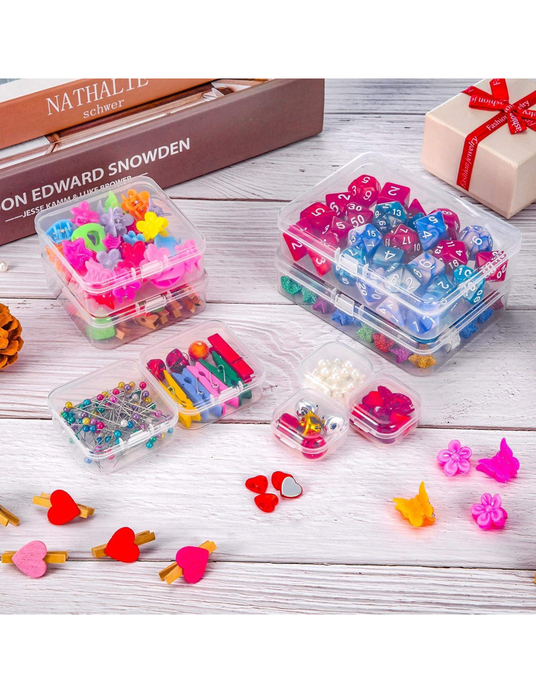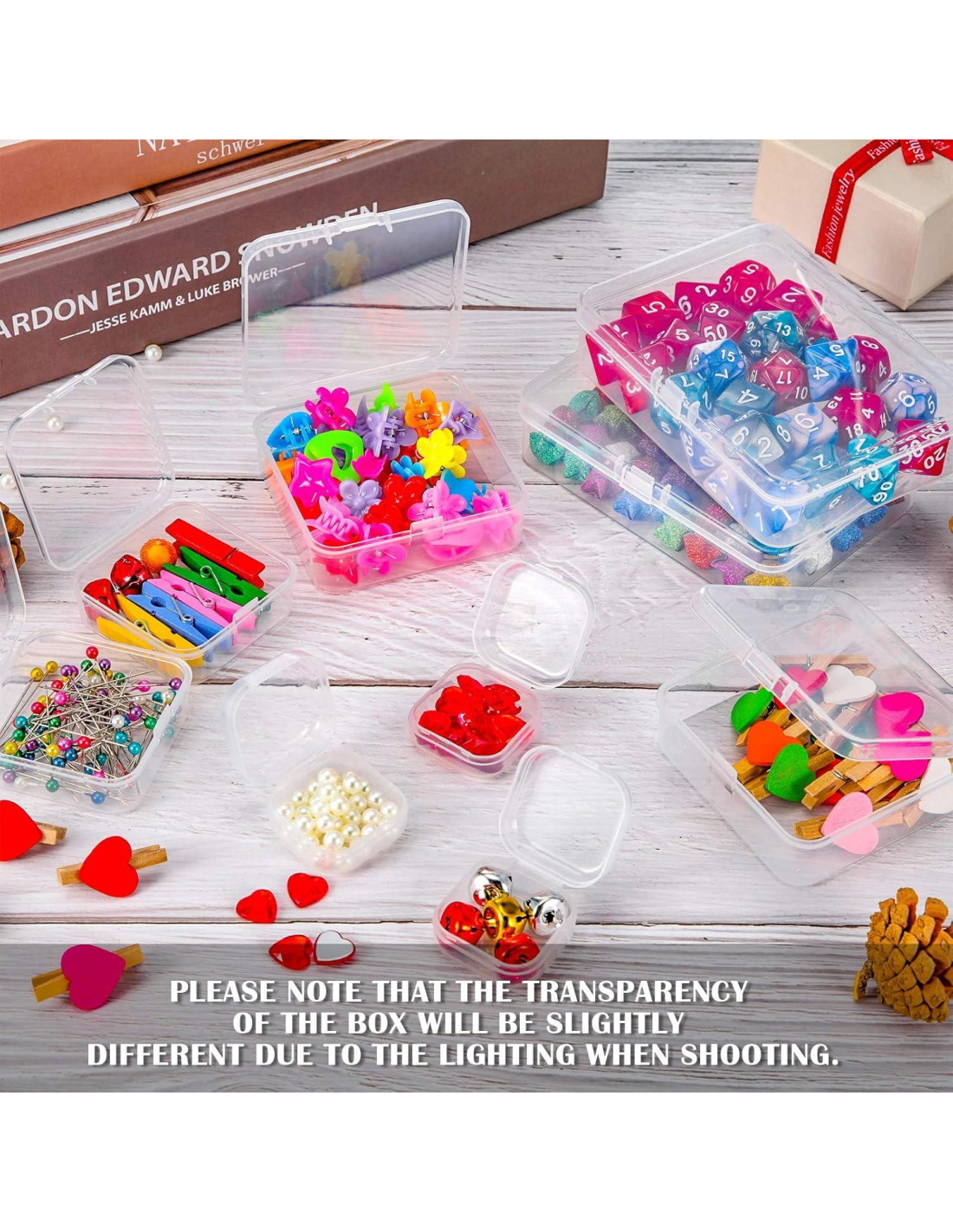 - Cantidad del paquete: recibirás 24 paquetes de pequeñas cajas de almacenamiento de perlas de plástico transparente con tapa abatible, excelentes contenedores claros para almacenar y organizar