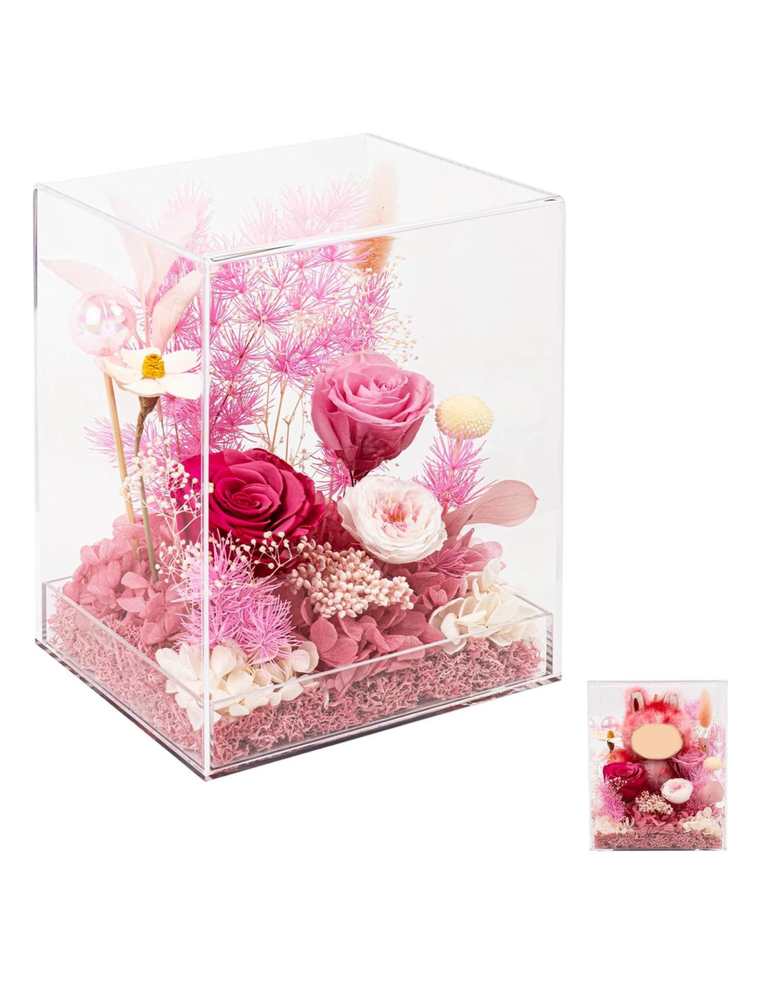 Rosaura Acrílico Coleccionable Caja de Exhibición con Paisaje Floral Preservado - Plataforma para Figuras de 3.5 pulgadas (8.89 cm) para LABUBU y otras muñecas, Rosas Eternas Decoración del Hogar y Regalos para Mujeres (SIN MUÑECA)