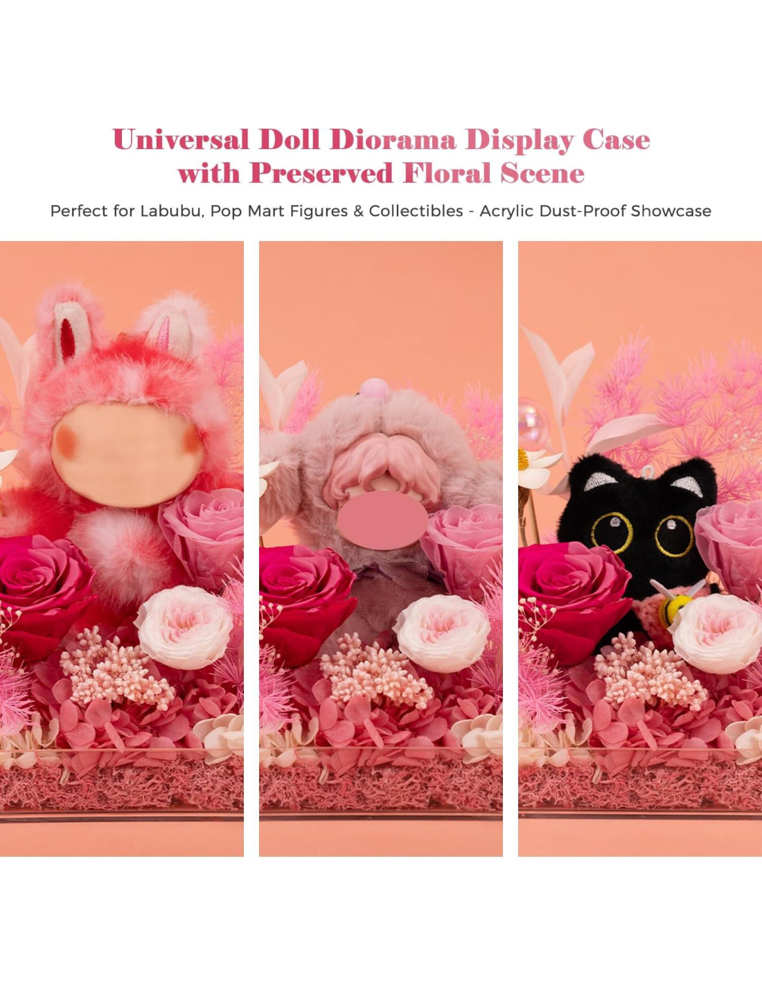 - Escenario Dinámico de Diorama para Coleccionables Presenta una plataforma de exhibición de 3.5 pulgadas (8.89 cm) de ancho para figuras populares como muñecas (se venden por separado). Las paredes de acrílico cristalino magnifican tus coleccionables en medio de rosas preservadas y flores eternas, creando escenas de narración en constante evolución.