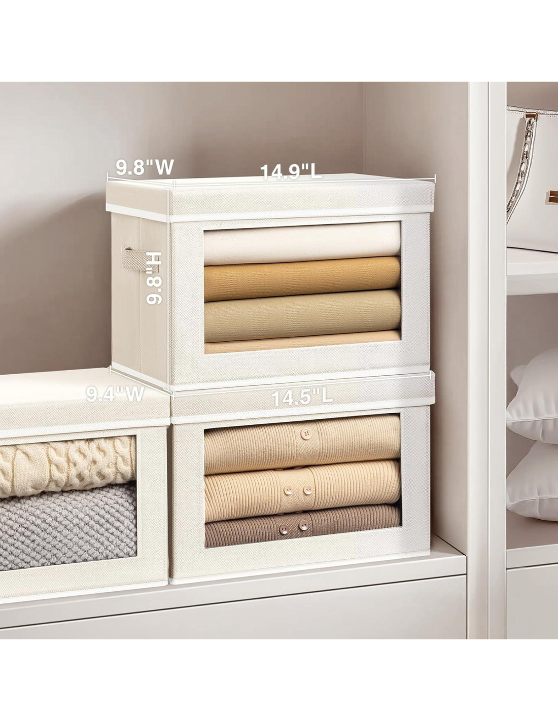 - [Tapas Removibles y Mangos Firmes] Las cajas para organización de closet tienen una tapa removible para mayor conveniencia y se pueden apilar sin deformarse. Dos mangos firmes y fáciles de agarrar hacen que llevarlas sea fácil y conveniente para acceder a las cajas de organización desde lugares altos.