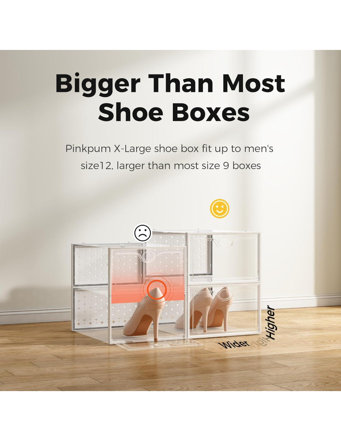 - [Tamaño X-Large Caja de Zapatos] Si aún te preocupa si estas cajas de almacenamiento de zapatos son adecuadas para tus zapatos. No te preocupes, los contenedores de zapatos tienen un tamaño de 33.5(L) x 25.9(W) x 15.7(H) centímetros que son adecuados para el tamaño 12 de hombres/tamaño 11 de mujeres.