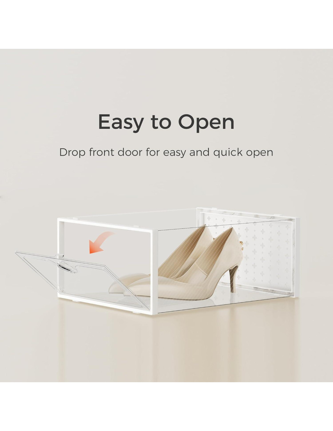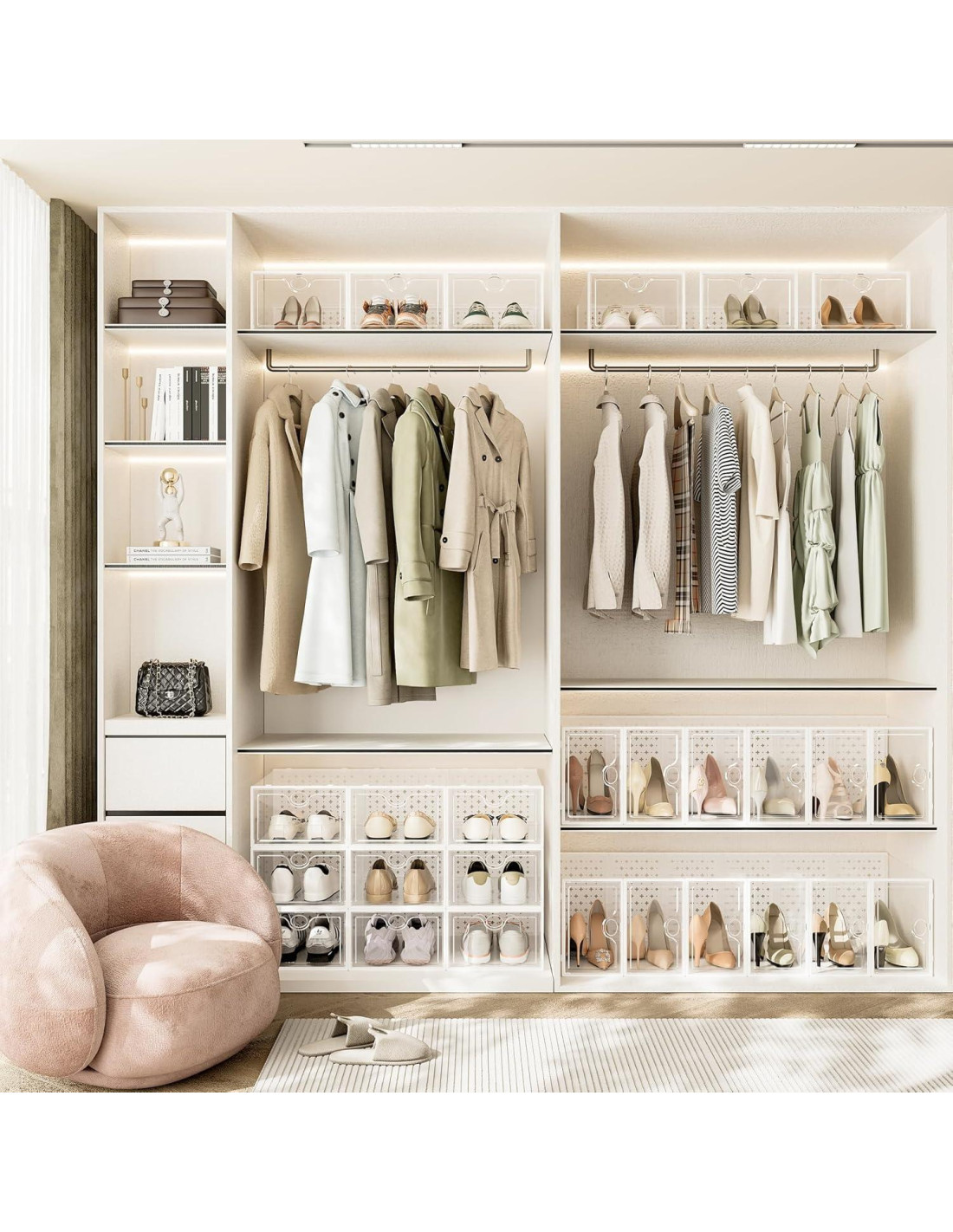 - [Transparente pero Transpirable] Cajas de zapatos transparentes con puerta frontal clara que te permiten ver fácilmente los zapatos que deseas y sacarlos. El marco trasero es poroso y muy transpirable pero aún libre de polvo.