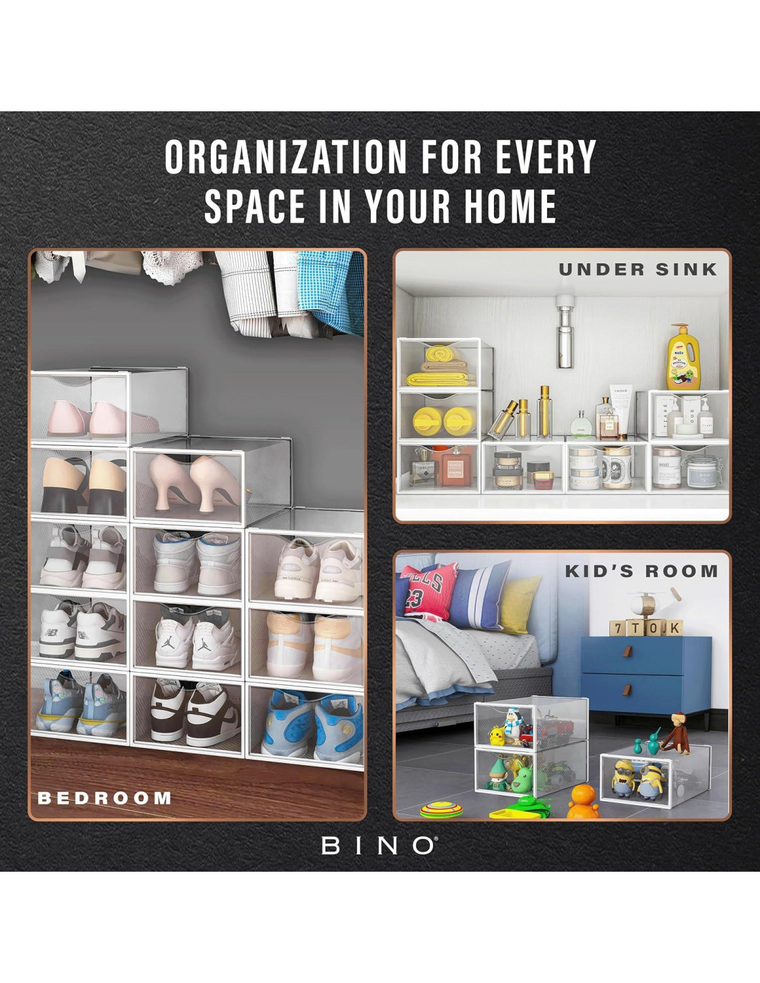 El Juego de 12 Cajas de Zapatos Apilables de Plástico BINO es un contenedor de almacenamiento de zapatos plegable que proporciona un ambiente libre de desorden. Esta solución es perfecta para almacenar tus zapatillas favoritas, ayudándote a mantener las cosas organizadas sin ocupar demasiado espacio. Está hecho de plástico duradero y de larga duración, y estas cajas de zapatos apilables están diseñadas para la resistencia y estabilidad. Cada contenedor de zapatillas tiene un fácil acceso de apertura frontal para un uso sin esfuerzo, por lo que puedes acceder rápidamente a tus zapatos cuando los necesites. Con su diseño de plástico transparente, puedes identificar rápidamente el contenido de la caja para un acceso rápido. Este almacenamiento de cajas de zapatos apilables también es excelente para ahorrar espacio, ya que se pueden apilar fácilmente una encima de la otra. Di adiós a los armarios desordenados y libérate del desorden con el Juego de 12 Cajas de Zapatos Apilables de Plástico BINO.
