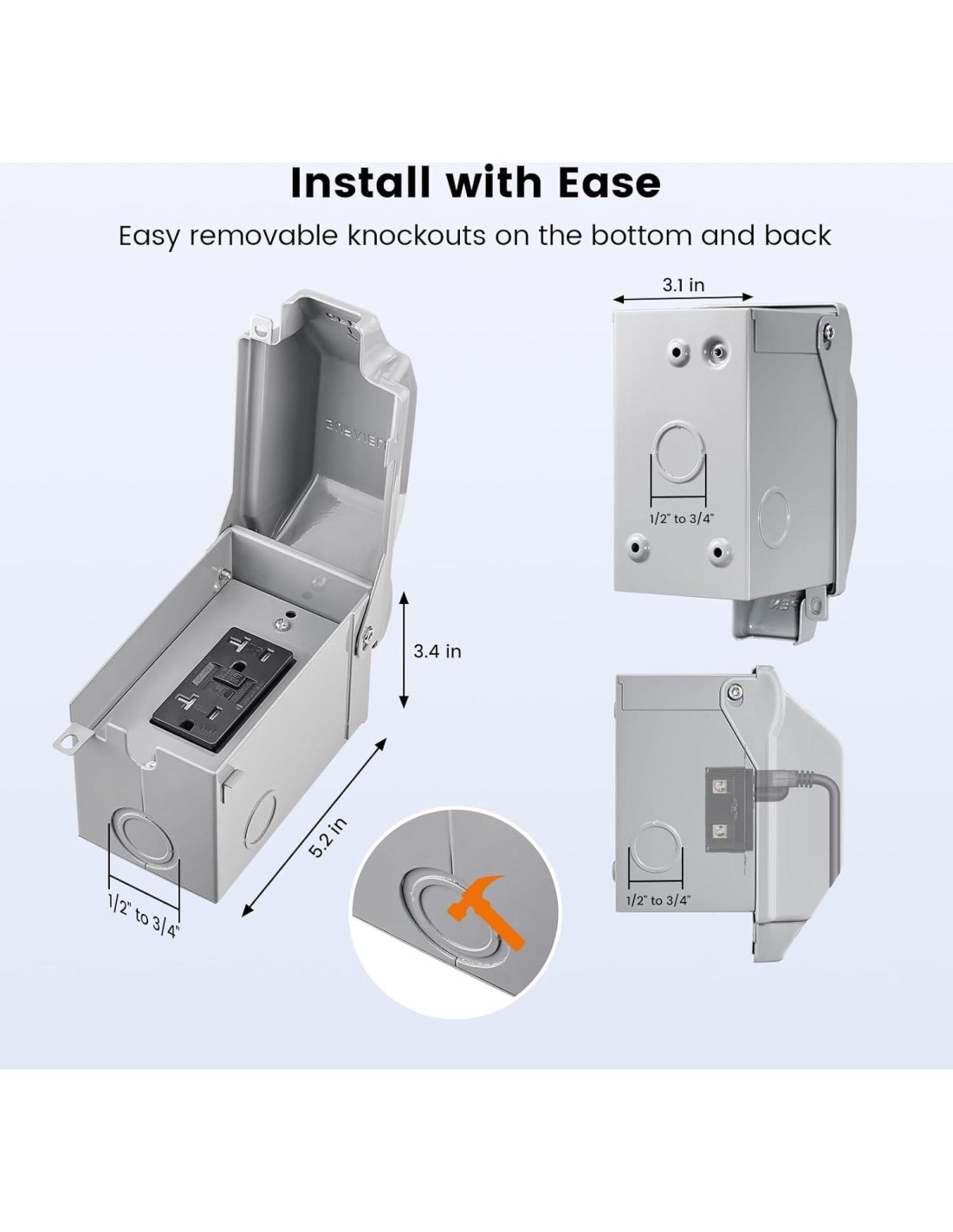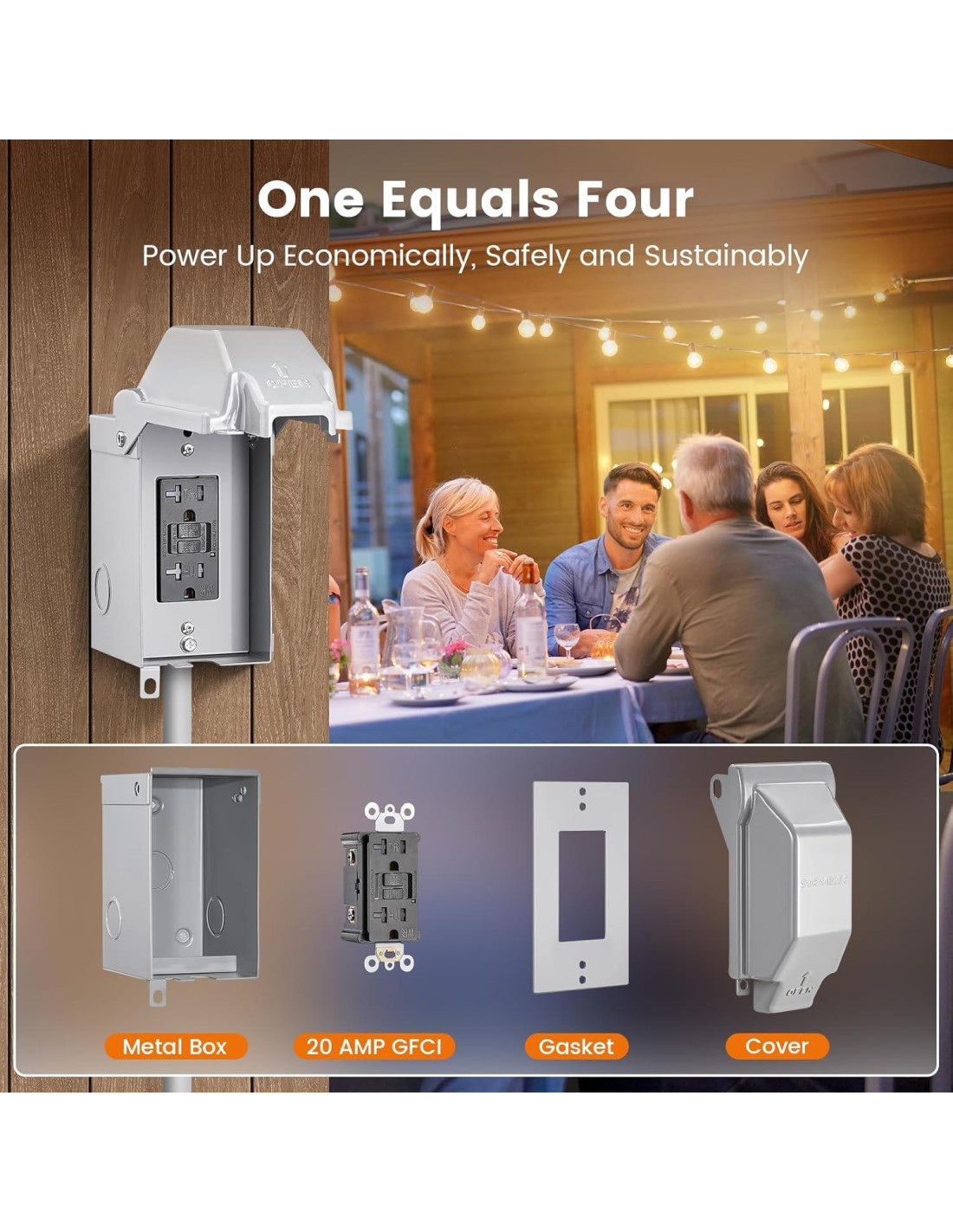 - Solución Integral de Energía Exterior: Incluye una caja de acero resistente, receptáculo GFCI de 20 AMP, junta y cubierta de metal; proporciona una solución de energía económica y robusta; perfecta para aplicaciones de caja eléctrica exterior impermeable y asegurando seguridad y conveniencia.