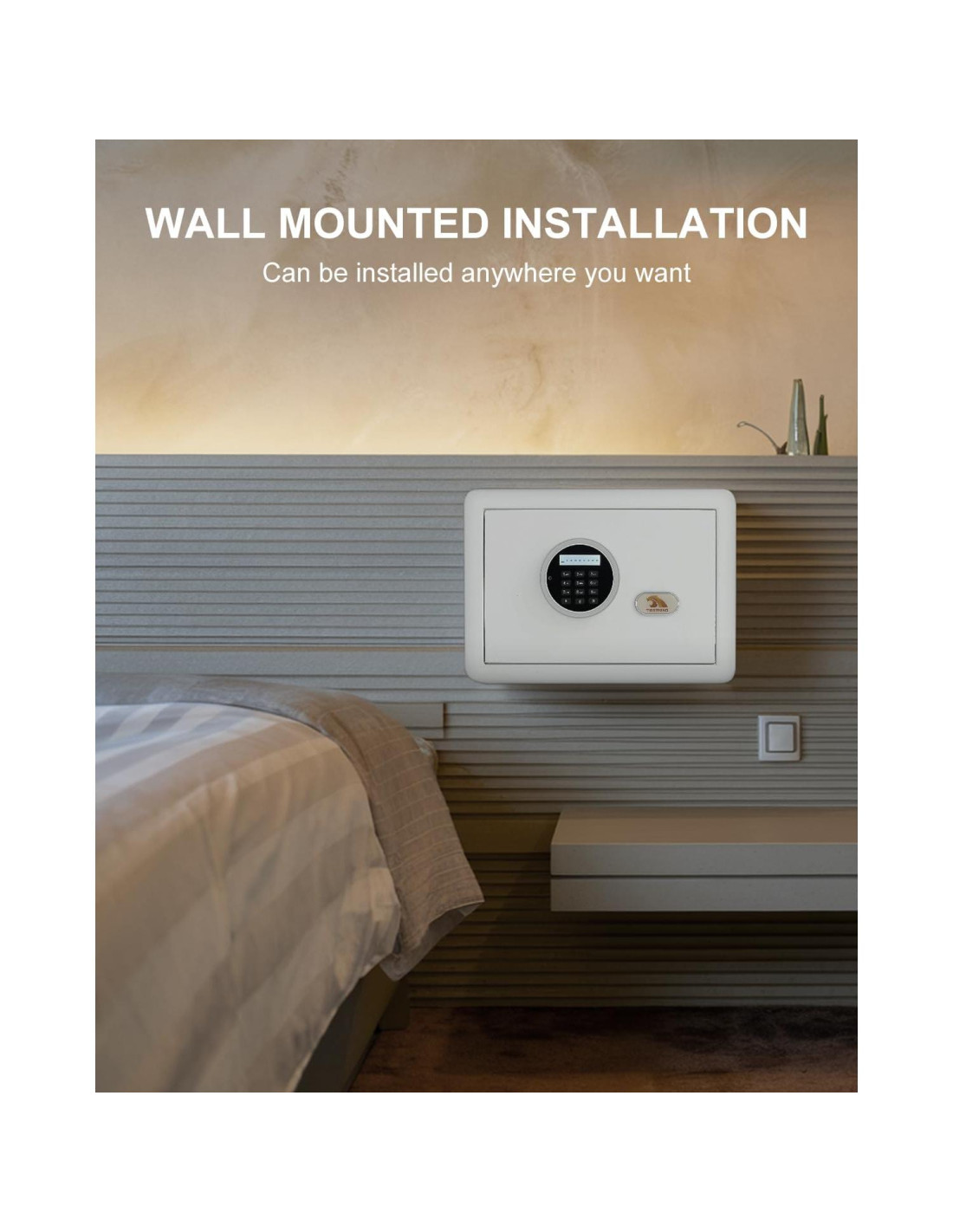 - Configuración Rápida con Agujeros de Montaje Pre-perforados: La parte trasera y el fondo cuentan con 4 agujeros pre-perforados con 4 pernos de expansión para un fácil montaje en pared o suelo, manteniendo tu caja fuerte pequeña para el hogar estable y oculta.
