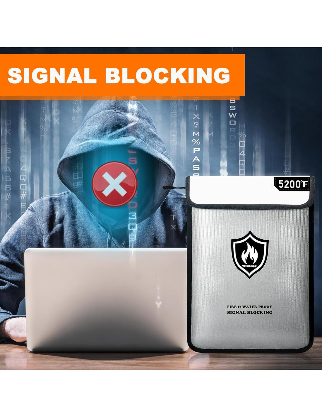 - Blindaje de Señal: La tela de blindaje super dentro de la bolsa de documentos ignífuga puede proteger eficazmente contra la electromagnetismo de media y alta frecuencia, señales de teléfonos móviles, GPS, RFID y señales de radio.