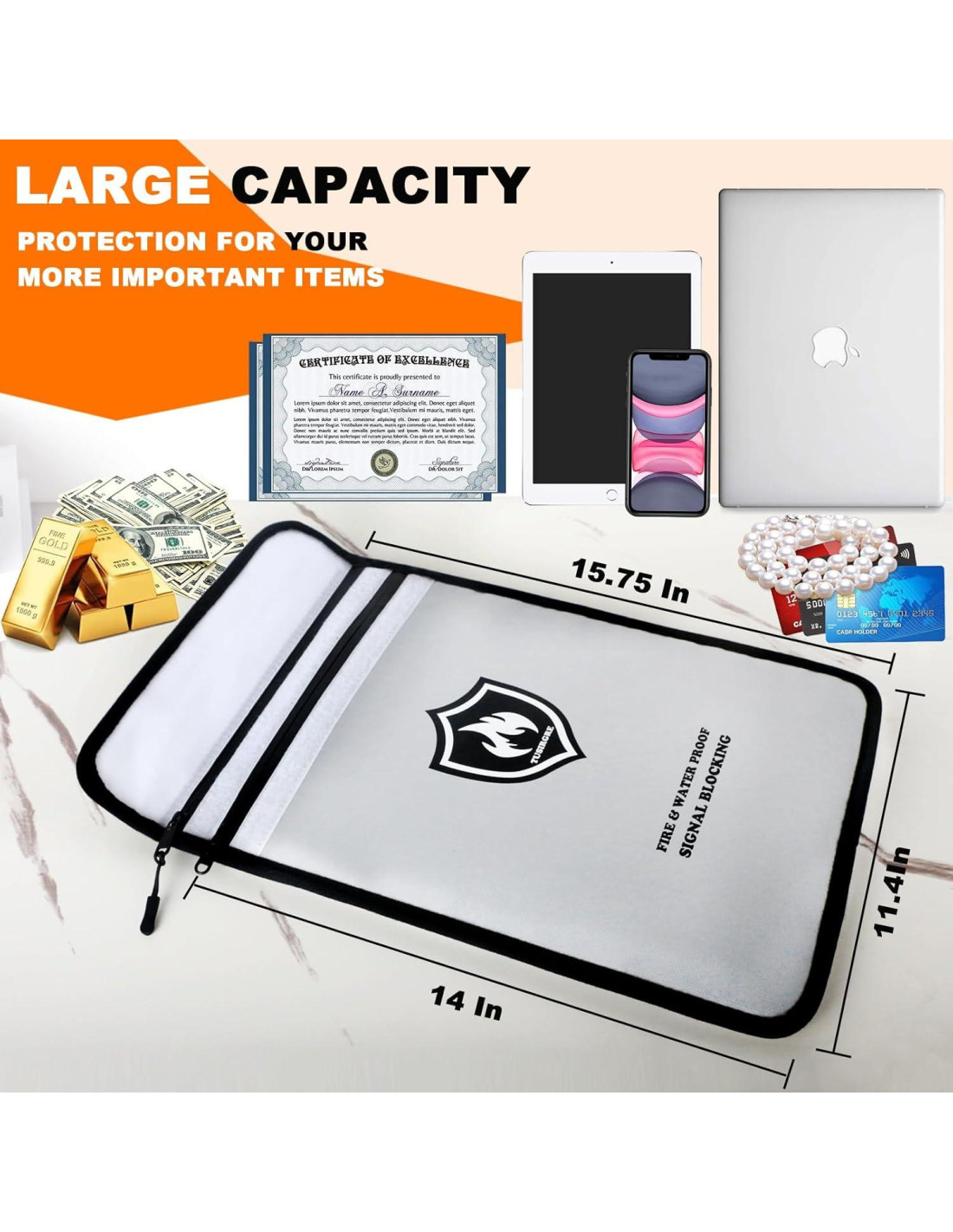 - Protección Confiable: Recomendado por bomberos profesionales y probado en los entornos más exigentes; La bolsa de dinero ignífuga de 15.7 x 11.4 pulgadas (40,01 x 29,00 cm) ha pasado los Estándares Globales de Inflamabilidad (laboratorios de EE. UU.) y las Pruebas de Combustión Vertical (SGS UL94 V-1)