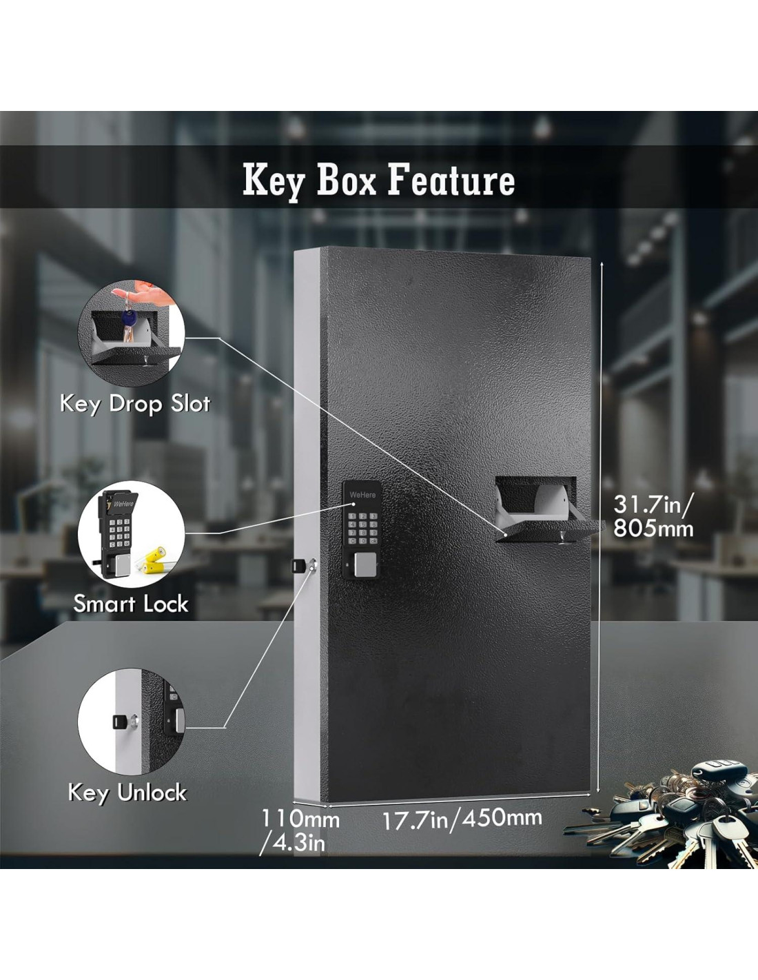 - Bien Hecho: La caja de llaves está hecha de acero laminado en frío, con un recubrimiento anti-óxido ecológico, asegurando seguridad y durabilidad durante años de uso confiable.