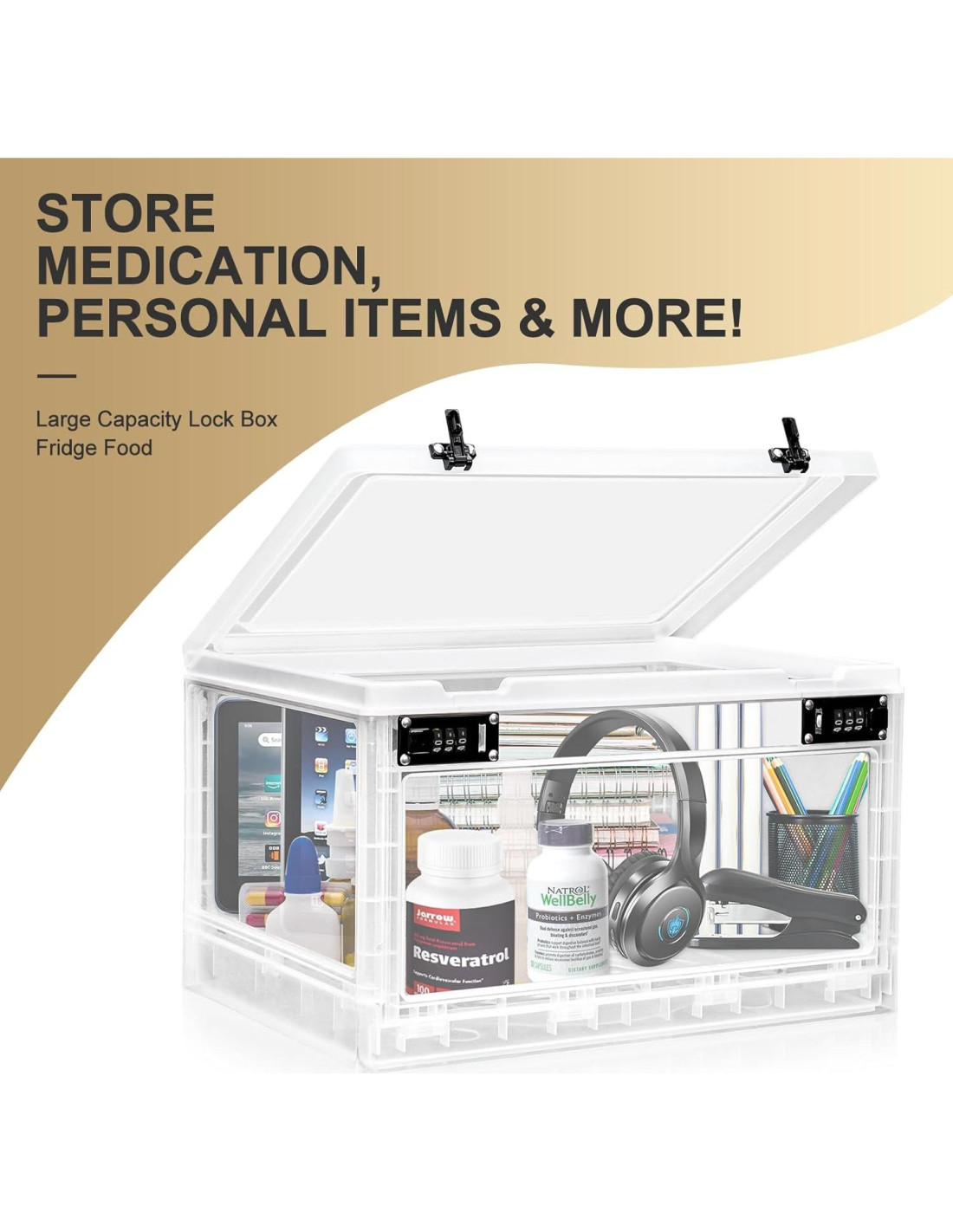 - Materiales Premium y Resistentes: La caja de seguridad para medicamentos está construida con materiales gruesos, resistentes, de alta calidad y libres de BPA, asegurando seguridad de grado alimenticio para tu tranquilidad. El diseño transparente te permite ver fácilmente el contenido de la caja.
