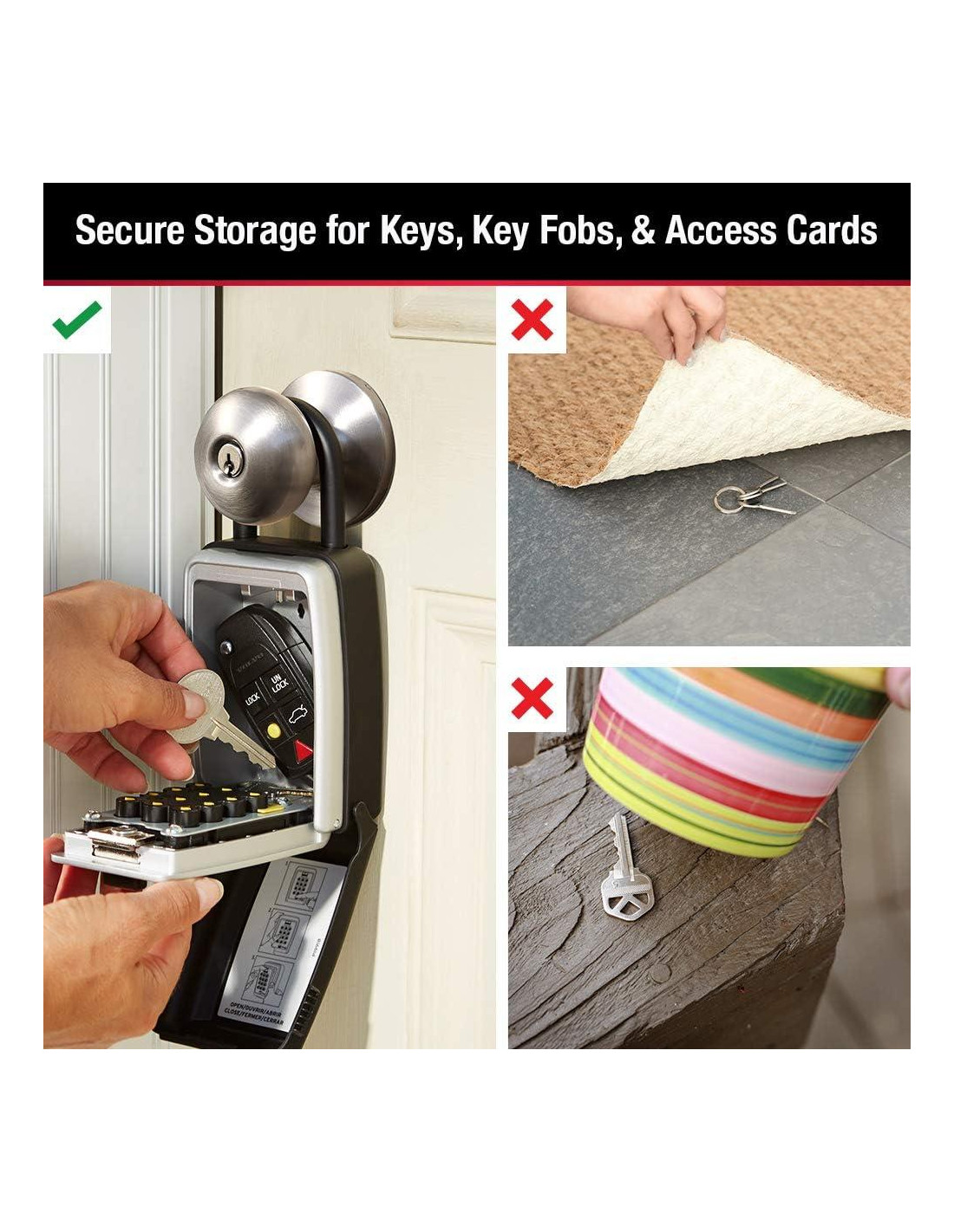 - La caja de llave de gran capacidad permite el almacenamiento seguro de hasta cinco llaves; se adapta a la mayoría de los estilos de perillas de puerta de bola, galleta y tulipán