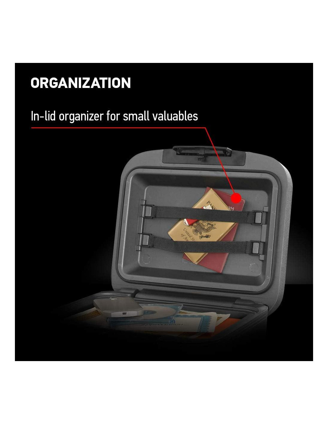 - CAJA DE DOCUMENTOS: La caja portátil sostiene papel tamaño A4 y contiene correas para guardar y encontrar fácilmente tarjetas de seguro social, pasaportes, certificados de nacimiento y otros registros críticos