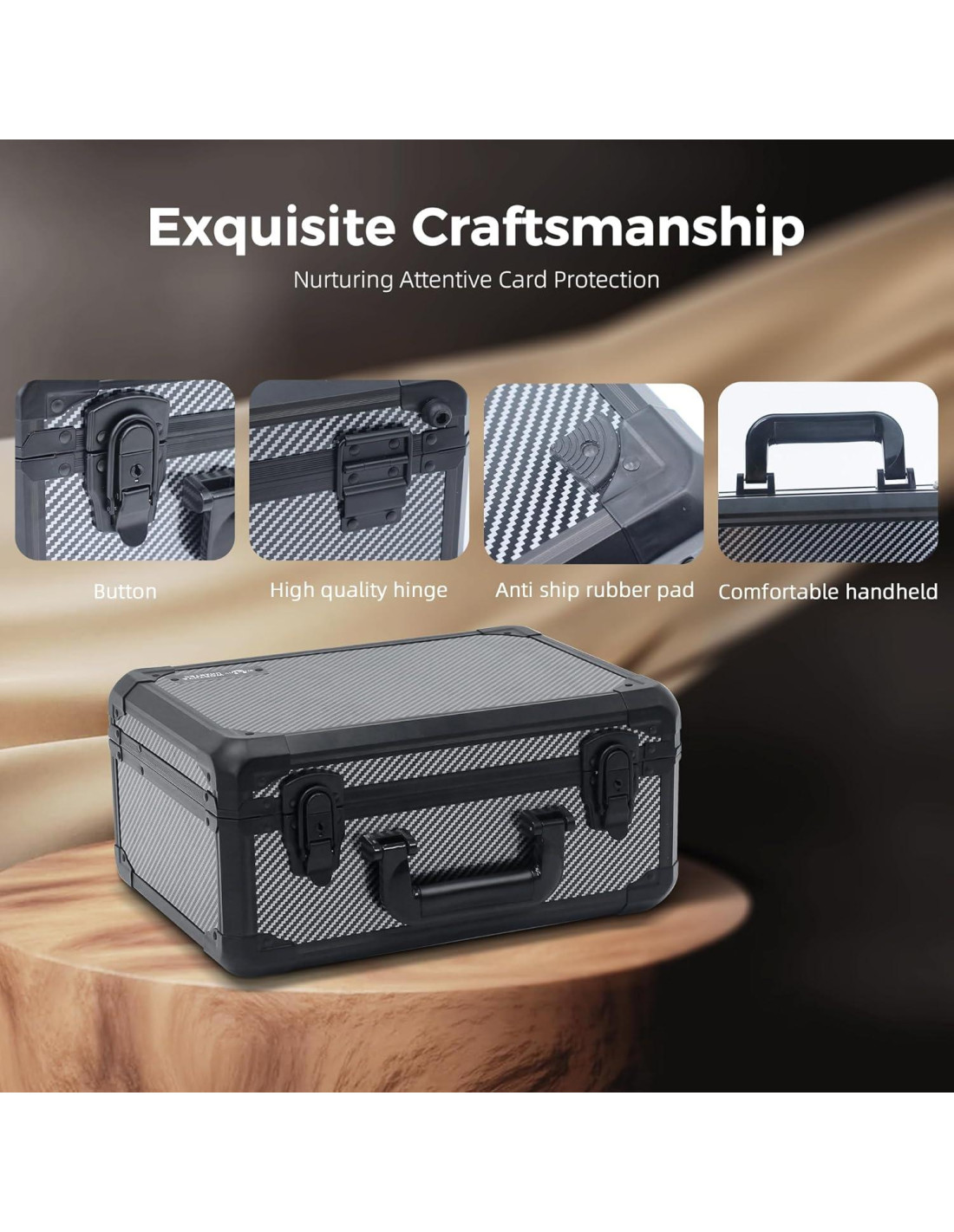 - Interior Seguro y Protector: Incluye inserciones de espuma cortadas con precisión con tres ranuras (88x210 mm cada una) para sostener de forma segura de 70 a 80 tarjetas de comercio deportivas calificadas. Espuma suave adicional de PU en la tapa proporciona amortiguación para absorber golpes y vibraciones durante el transporte. Viene con tres bloques de espuma removibles para almacenamiento ajustable.