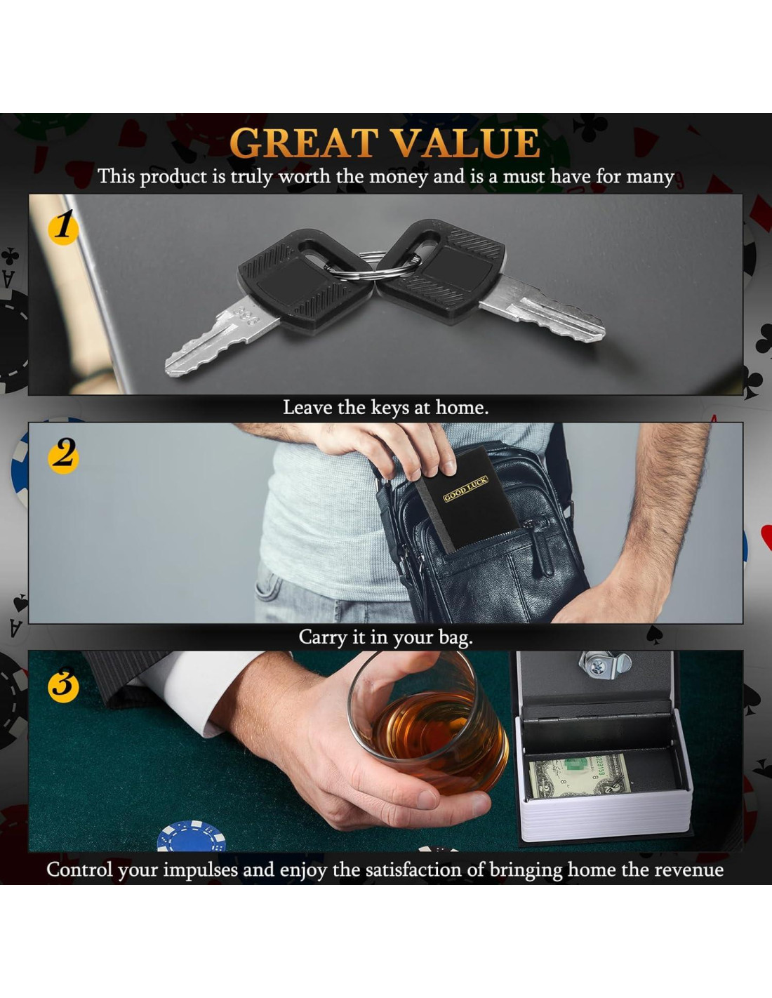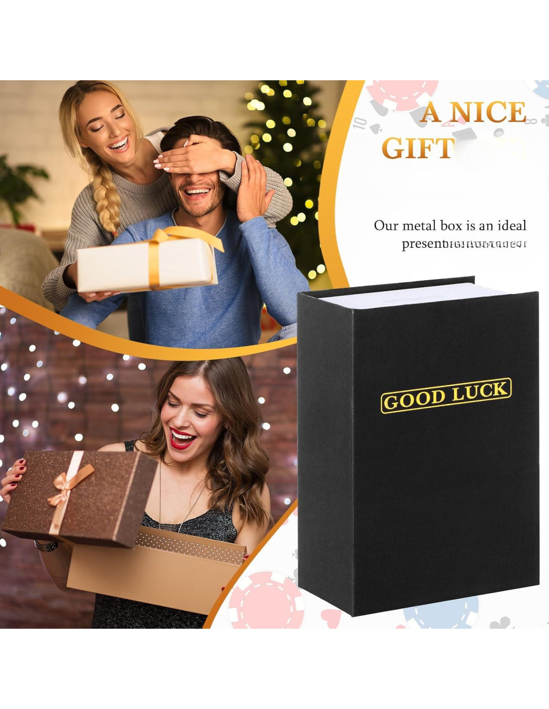 - Banco de Ganador Buena Suerte: nuestra caja de dinero de casino puede parecer un mini libro, pero en realidad es una caja de dinero metálica; La superficie de la caja está estampada en caliente con las palabras 'Buena suerte', añadiendo un toque de encanto y trayéndote buena suerte; Con esta caja a tu lado, te sentirás seguro y bendecido