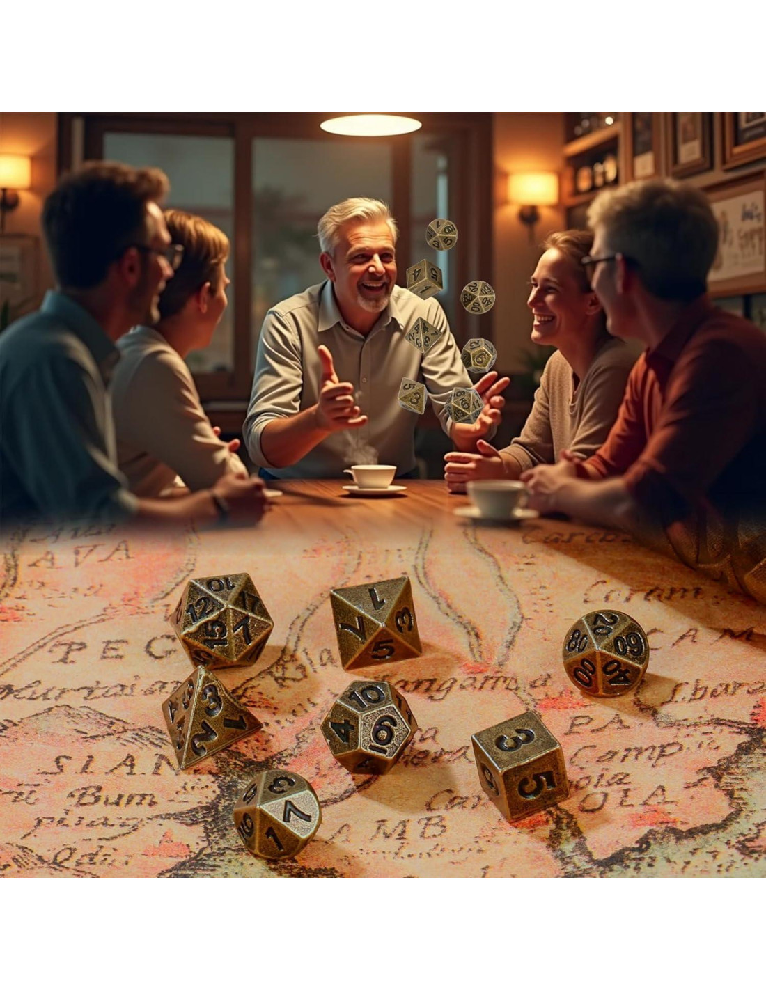 - Colección de Dados en Miniatura: Este conjunto incluye 7 dados metálicos poliedricos mini, perfectos para entusiastas de RPG de mesa MTG, ofreciendo una forma conveniente de llevar tus accesorios de juego esenciales.