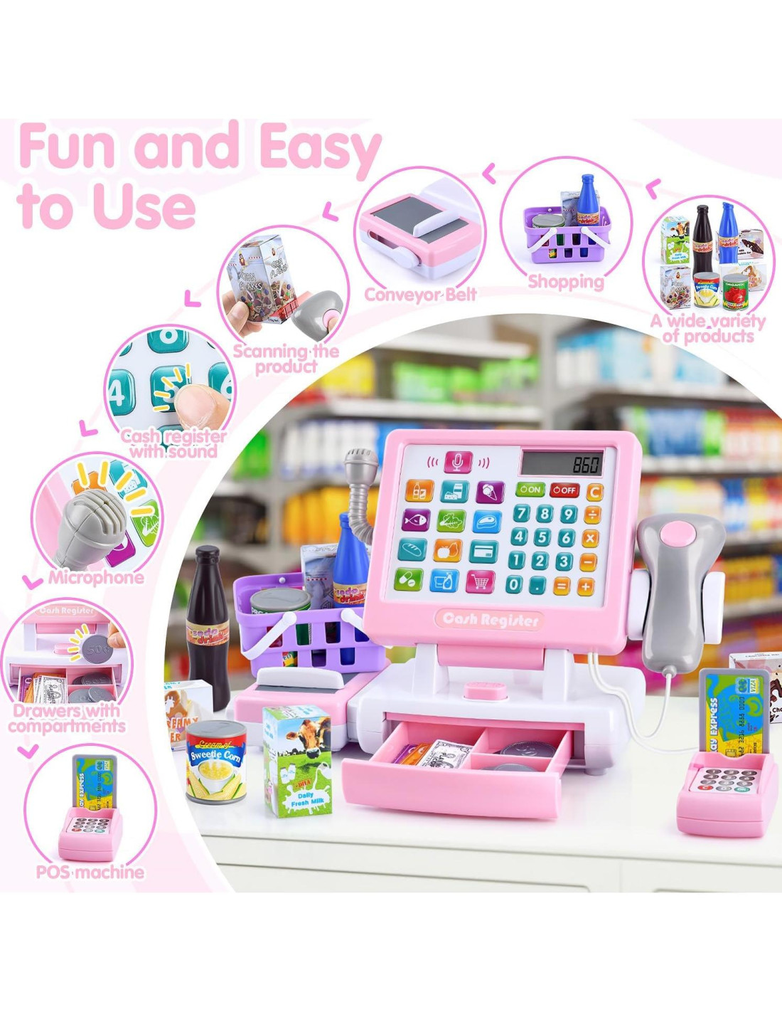 - Caja Registradora Rosa para Niños - La pantalla del juguete de caja registradora PLAY está equipada con una calculadora real que puede ser un juguete matemático para niños de 3 a 5 años, ayudando a los niños a aprender matemáticas básicas, habilidades de conteo de dinero y desarrollar habilidades de comunicación mientras juegan juegos de rol. Este supermercado de juguetes con caja registradora es un juguete imprescindible para niños de 4 a 8 años y es un gran regalo educativo.