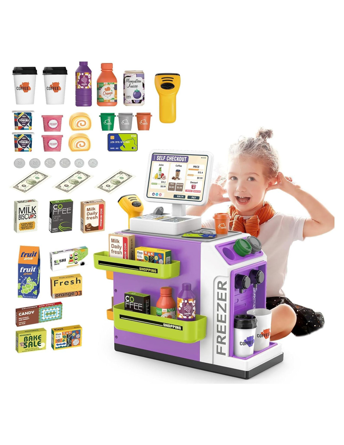 - Caja Registradora Juguete: deAO 3 en 1 Supermercado, máquina de café, juguete de nevera, ¡nuestra cafetera tiene una nueva función de presionar para dispensar agua! Este juguete innovador permite a su hijo explorar los ámbitos de dirigir una cafetería y gestionar transacciones en una caja registradora, no solo entretendrá a su hijo durante horas, sino que también incluye una variedad de accesorios de compra que a su hijo le encantarán.