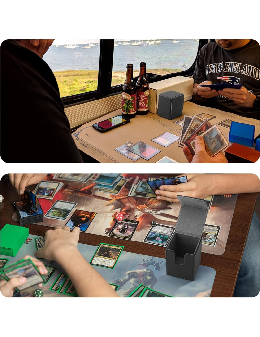- La costura de la caja de barajas MTG está reforzada para evitar desgarros. Los patrones exteriores bien diseñados y la tapa de auto-bloqueo invisible son llenos de personalidad fresca y llamativa, que incluso se mantiene segura si se cae accidentalmente.