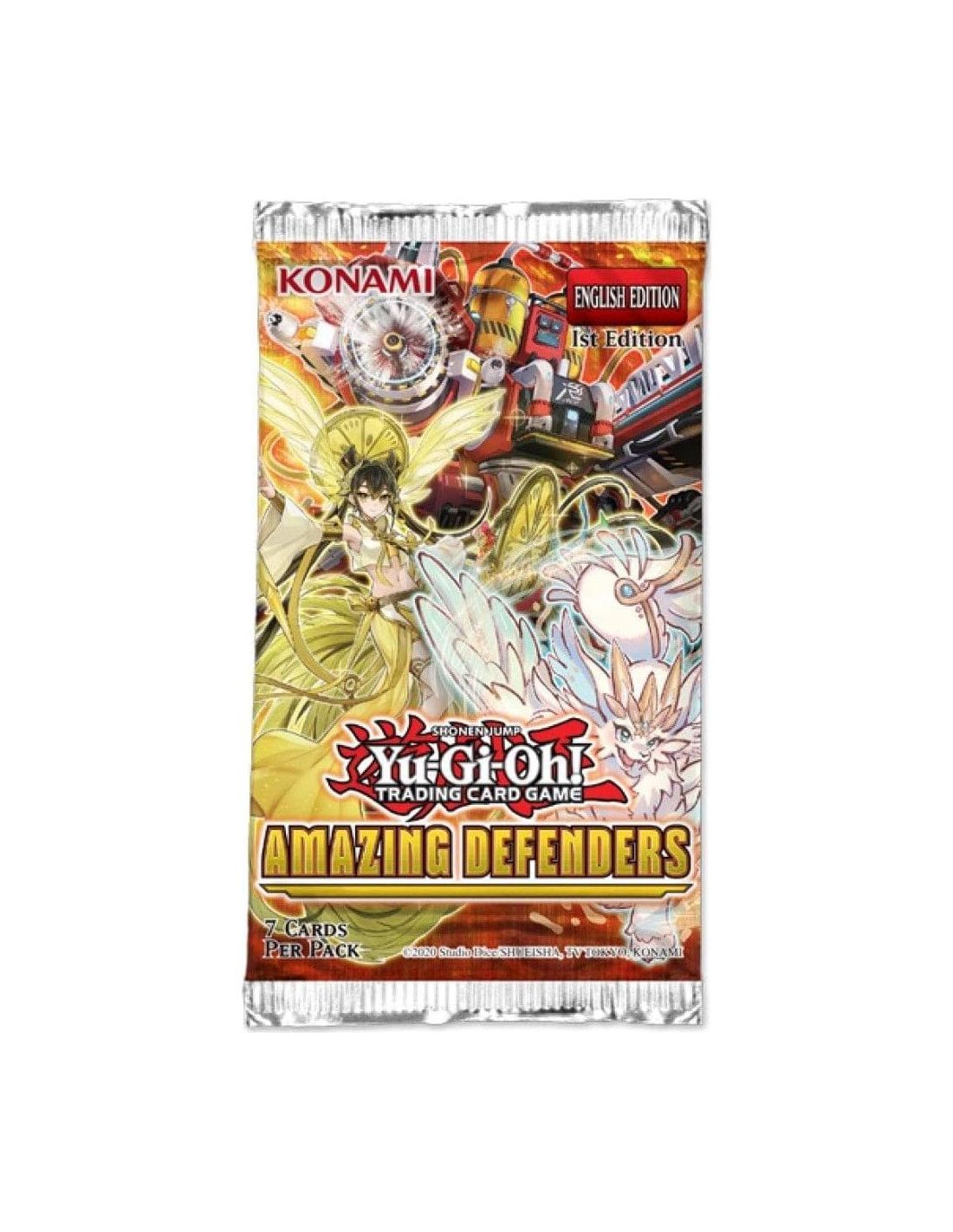 Caja de refuerzo sellada de fábrica del set Increíbles Defensores de Yugioh de Konami. Esta caja contiene 24 paquetes y cada paquete contiene 7 cartas de juego (1 carta foil en cada paquete).