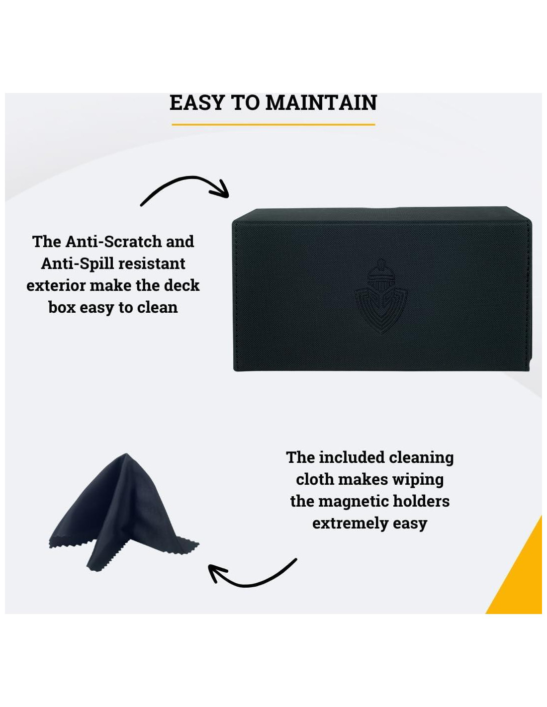 - DISEÑO REFINADO - Acepta hasta 25 Soportes Magnéticos para Cartas (Incluidos en el paquete). El cierre magnético mantiene los compartimentos cerrados cuando deseas que la caja de baraja esté asegurada. El interior suave y el material exterior resistente hacen que el armario de la baraja se sienta genial y luzca muy impresionante.