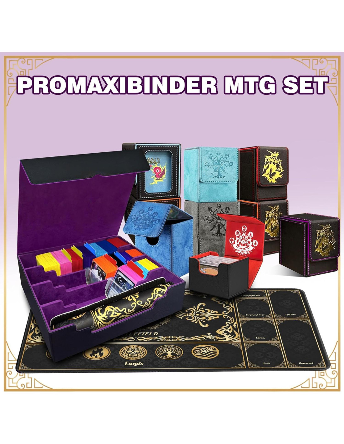 - Caja de Almacenamiento de Cartas de Trading Premium: La caja de almacenamiento de cartas de trading PROMAXIBINDER MTG está hecha de cuero impermeable de alta calidad, lo que la hace duradera, antideslizante, impermeable, resistente a rasguños y al desgaste. El interior de esta caja de almacenamiento de cartas MTG está forrado con microfibra suave. Estos materiales duraderos y la exquisita artesanía aseguran un uso prolongado, proporcionando una excelente protección contra el agua, rasguños y manchas para tus preciosas cartas.