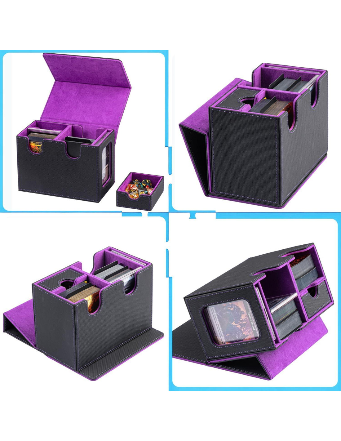 - [Mayor Capacidad de Almacenamiento] La caja de deck MTG tiene dos compartimentos, impresionante capacidad, y acomoda fácilmente más de 400 cartas de juego sin funda. También es adecuada para contener 200+ cartas con doble funda o 300+ cartas con funda simple. También incluye un cajón extraíble para almacenar dados. Ideal para almacenar múltiples mazos al mismo tiempo, eliminando la necesidad de múltiples cajas y una caja de dados separada, asegurando que todos tus elementos esenciales de juego estén organizados y al alcance.