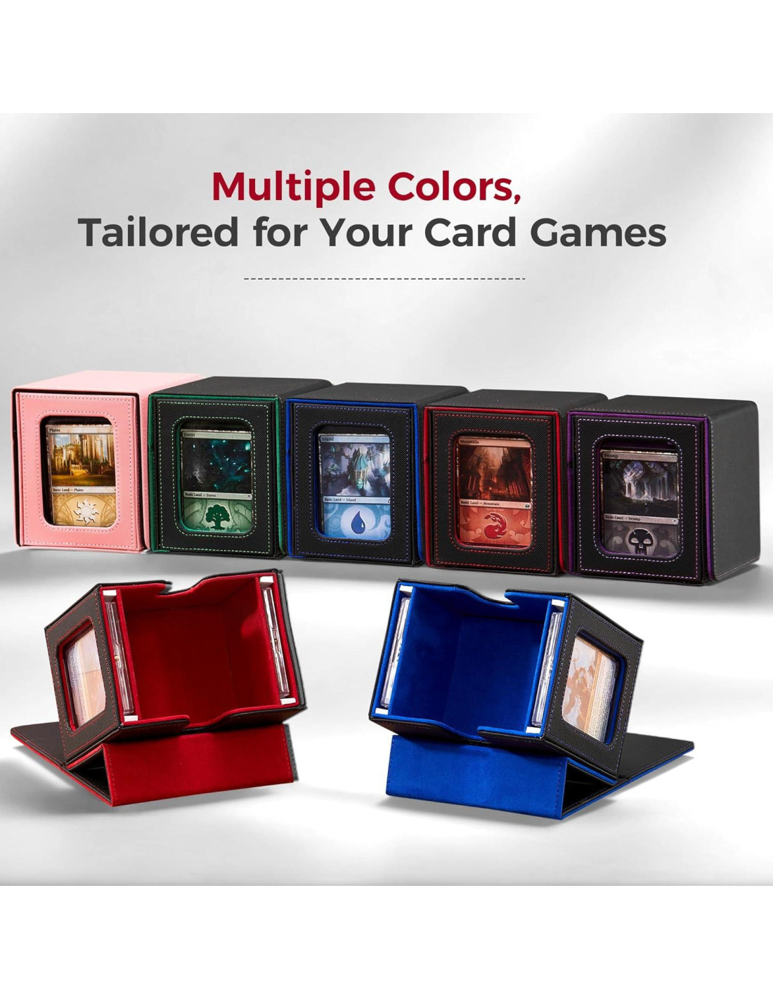 - Diseño Patentado: Construido para Commander/EDH, esta caja de barajas mágica tiene ventanas dobles para mostrar cartas de Commander y Partner; el diseño horizontal simplifica la identificación de la baraja, ofreciendo estilo y función, haciéndola ideal para jugadores de Commander