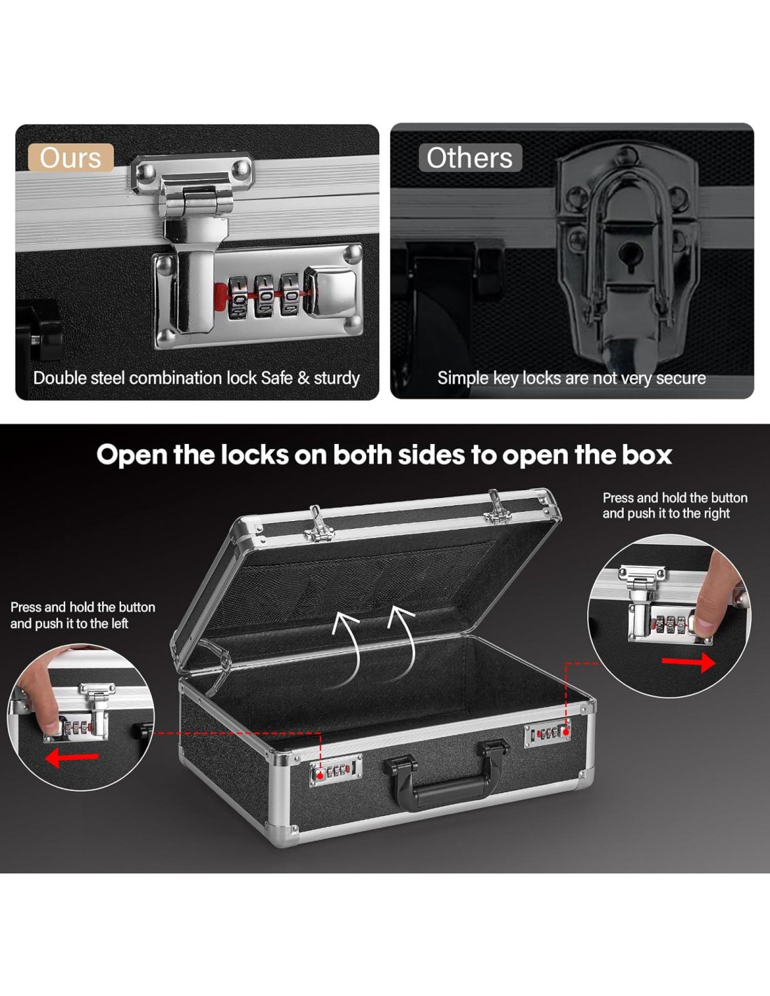 - SEGURO Y PROTEGIDO - La caja de almacenamiento con cerradura ofrece doble protección con su sistema de cerradura combinada de doble. Establezca un código único de 3 dígitos para proteger documentos y objetos de valor de miradas indiscretas