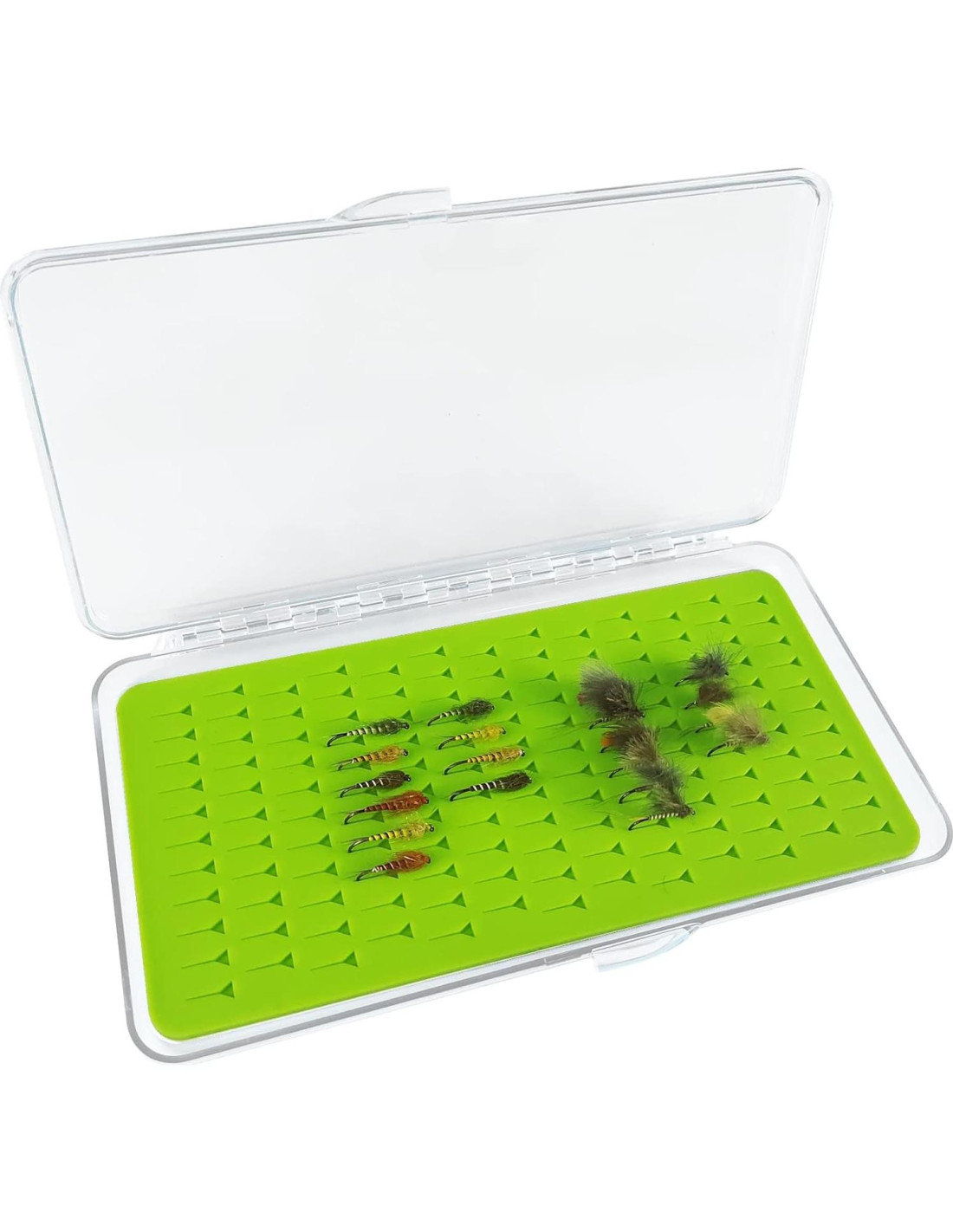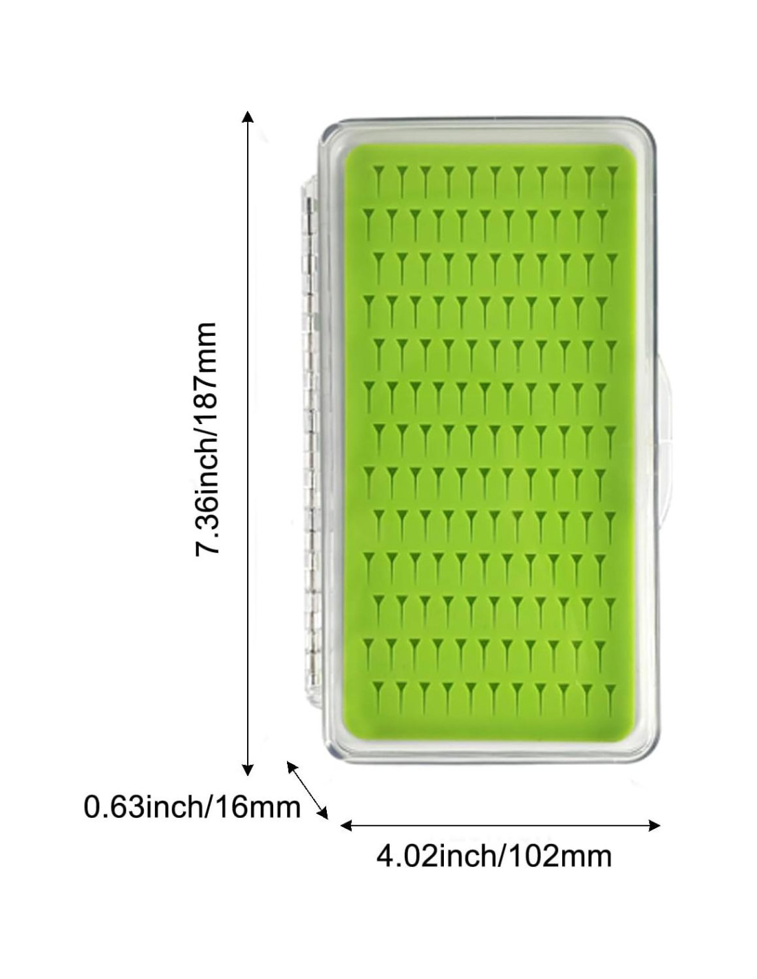 - Tamaños de bolsillo populares 18.66cmX10.21cmX1.60cm (7.36"X4.02"X0.63"), Caja de moscas con almohadilla de silicona sostiene 110 moscas.