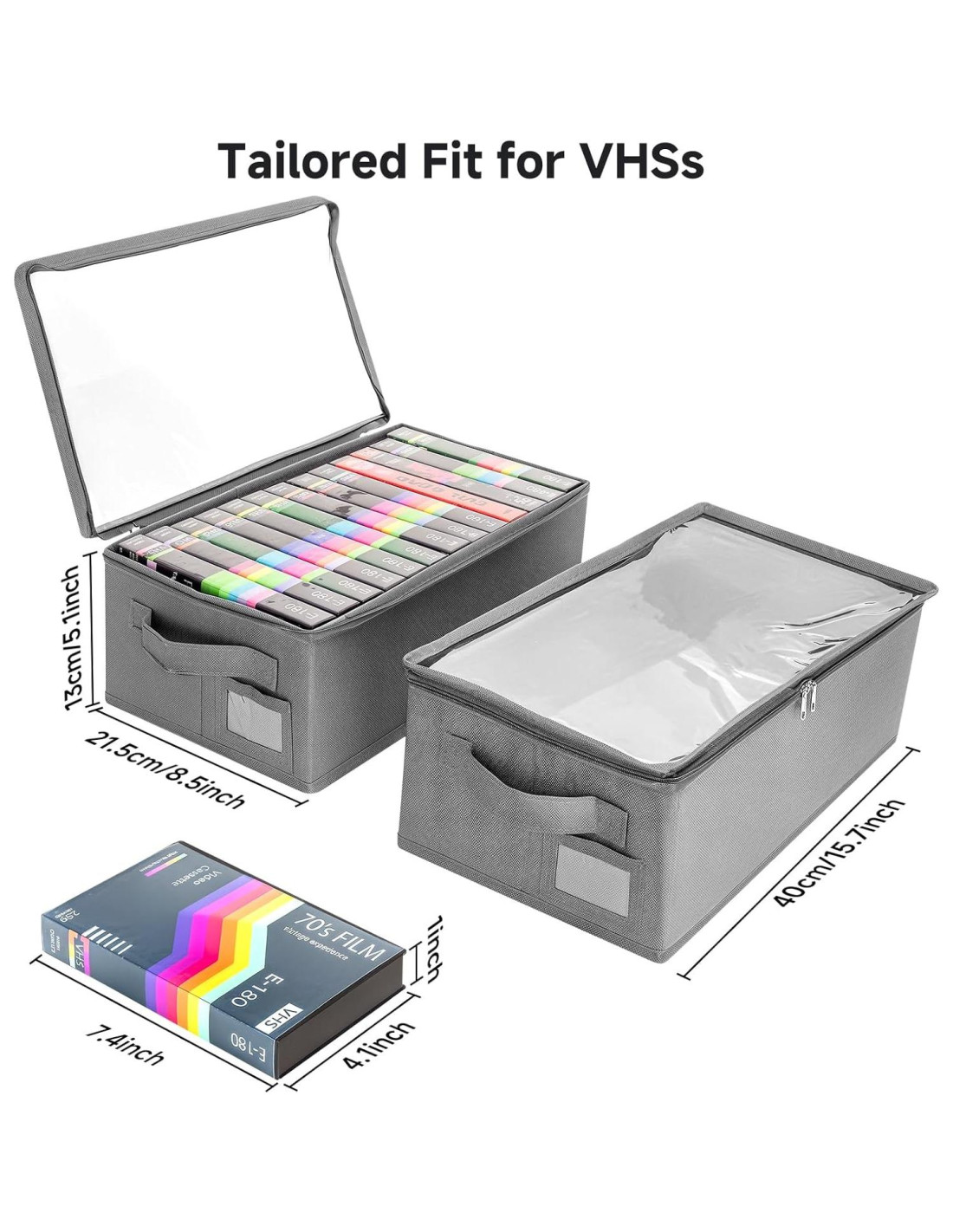 - Construcción de Tela No Tejida Resistente Construida con paneles reforzados y tela no tejida gruesa, esta caja para cintas de video es ligera y resistente. Mantiene tus valiosas cintas limpias, protegidas y en óptimas condiciones.