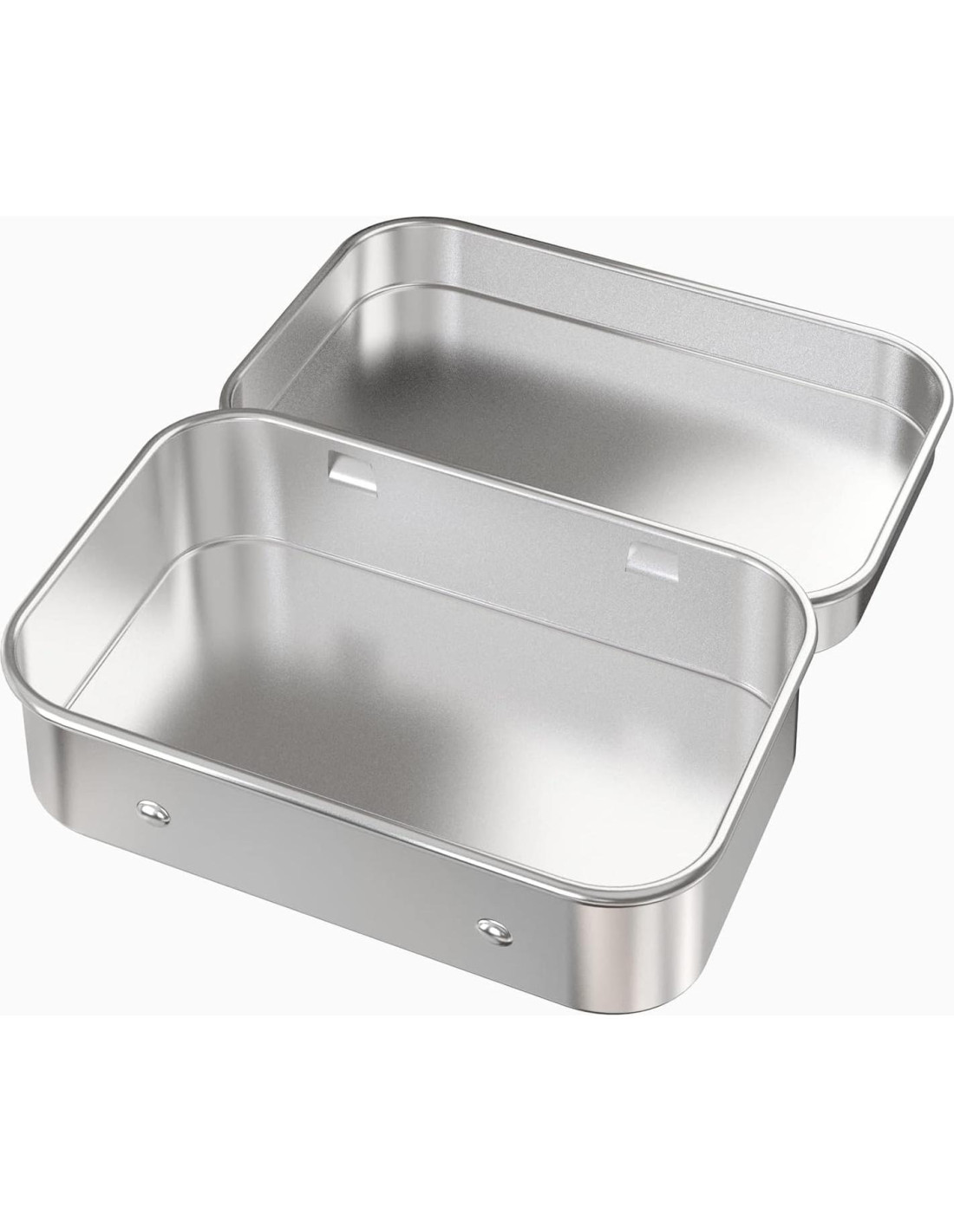 - Material: Material de los contenedores rectangulares: hecho de hierro recubierto de estaño, Tamaño del producto: 9.4 cm x 5.8 cm x 2.0 cm (L*W*H); Grosor del material: 0.23 mm, 30 por paquete, Plateado.