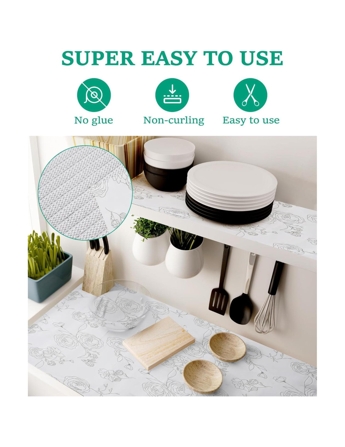 Crea una vida hermosa, disfruta del clásico tranquilo y ordenado Mantente en su lugar! No adhesivo! Nuestro son para tu . Material suave y grueso para un , nuestro forro de estante de cajón de gabinete también , puede . Nuestro forro de gabinete es y , y lo suficientemente versátil para usar en prácticamente en tu cocina, incluyendo el . El mejor forro de estante para inquilinos Muy fácil de ajustar y colocar plano