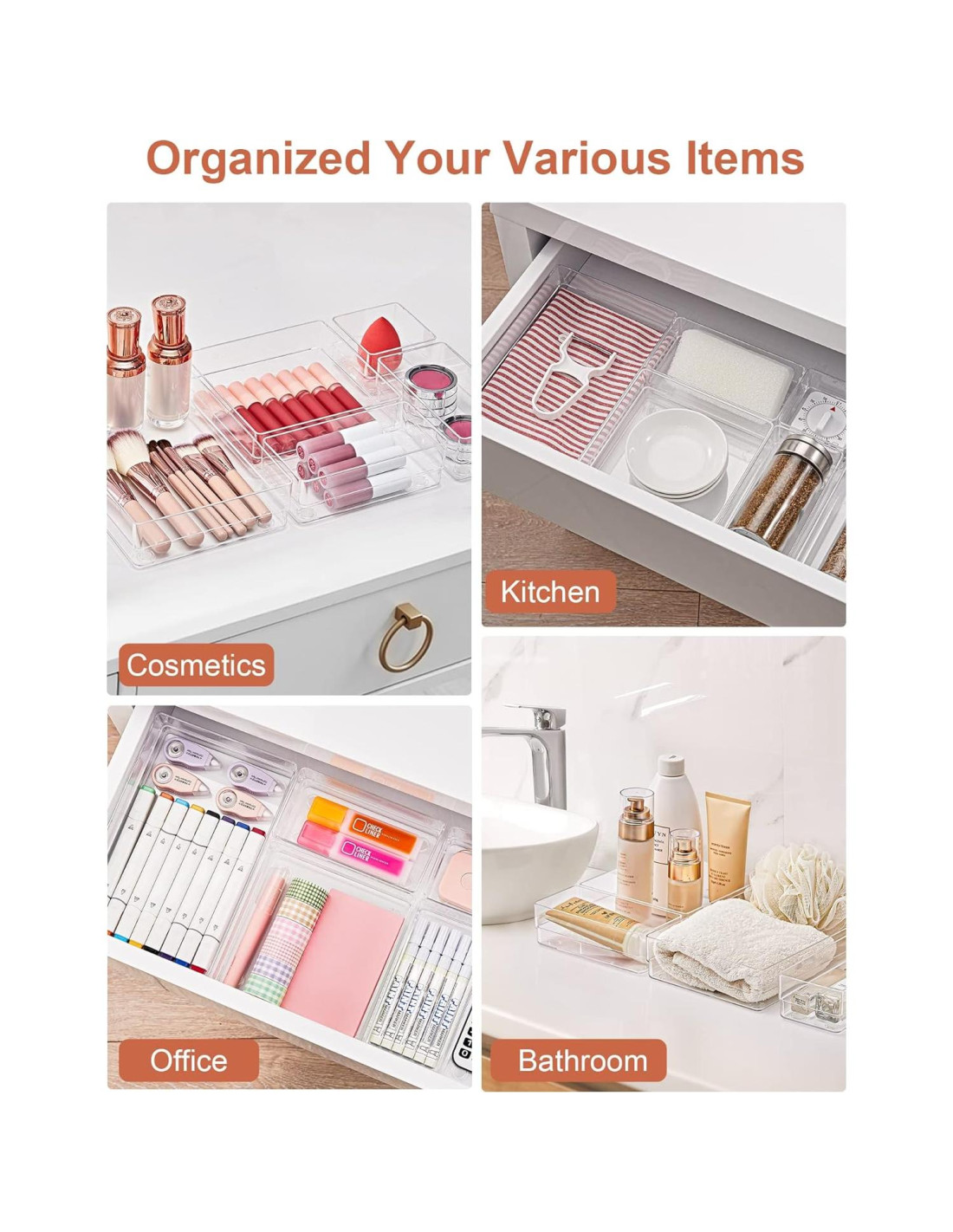 - Ahorre su Tiempo - Los organizadores de cajones transparentes pueden ahorrar su tiempo para organizar y encontrar sus cosas, es fácil encontrar y usar sus artículos en el cajón, mantener su espacio ordenado, ayudarle a obtener un estilo de vida ordenado y disfrutar más.