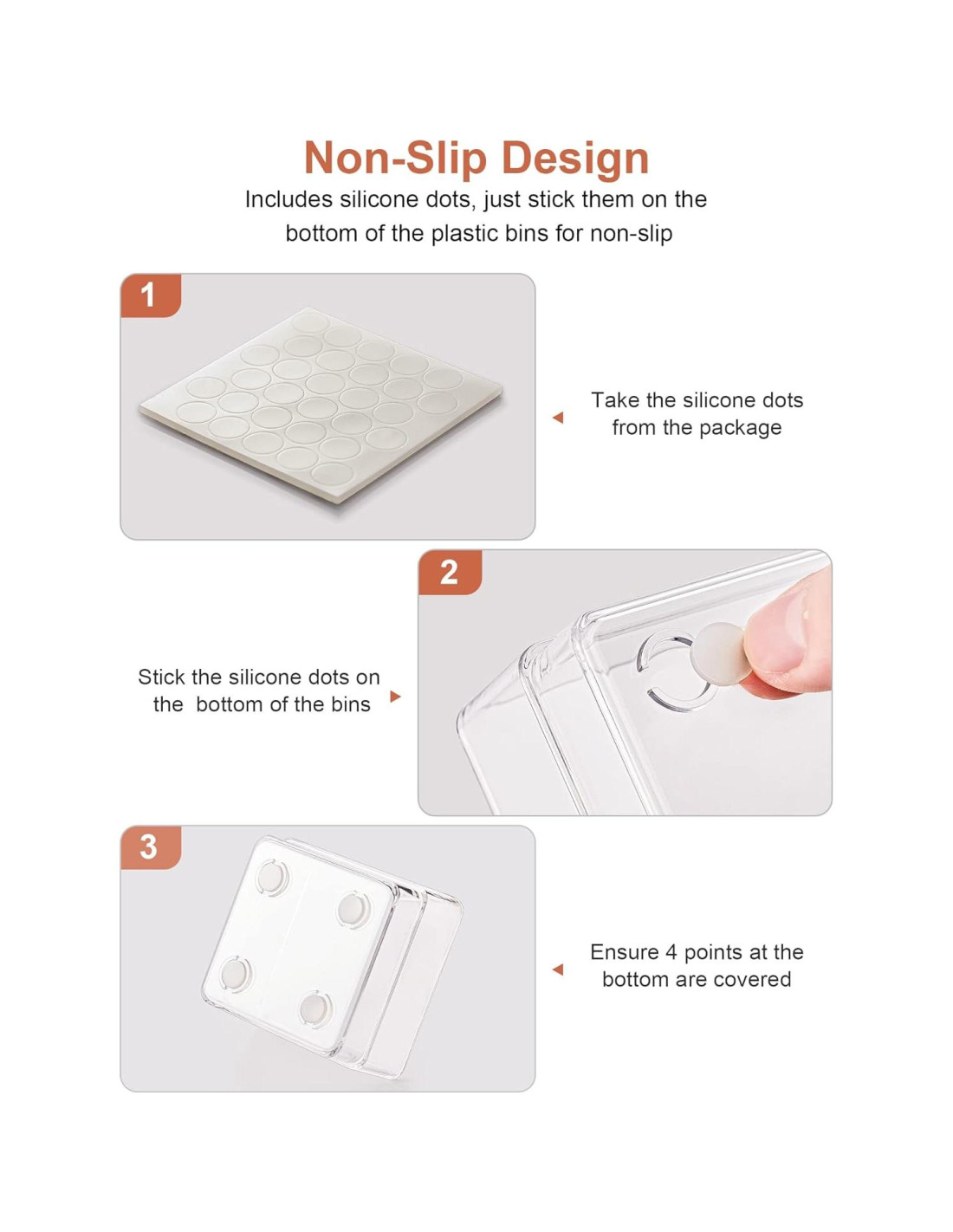 - Material Duradero y Antideslizante - Los organizadores de cajones transparentes están hechos de plástico irrompible, garantizando una larga vida útil. Las almohadillas de silicona antideslizantes en la parte inferior del contenedor evitan que la caja se mueva libremente al arrastrar el cajón.
