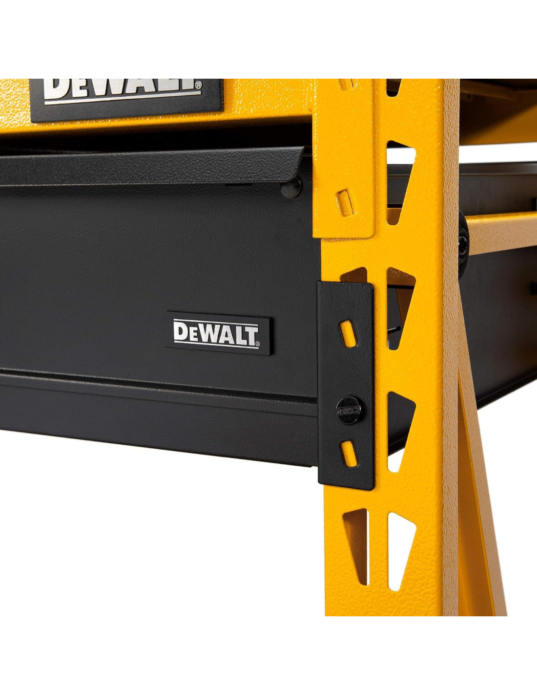 Convierte tu estante DEWALT de 4 pies en un banco de trabajo funcional con el Kit de Cajón DXST4500DK. Diseñado para montarse directamente en los postes de tu estante de almacenamiento industrial de 4 pies existente utilizando el mismo sistema de pestaña ajustable de 2.35 pulgadas (5.97 cm) que las vigas de estante, este accesorio resistente aporta 120 libras (54.43 kg) de capacidad de almacenamiento adicional para herramientas y artículos a tu estante. Abriendo a lo largo de deslizadores de cajón de rodamientos de bolas de deslizamiento suave, su interior mide 42 pulgadas (106.68 cm) de ancho, 6 pulgadas (15.24 cm) de alto y 16.5 pulgadas (41.91 cm) de profundidad, lo suficientemente grande como para almacenar todo, desde herramientas eléctricas y manuales, hasta martillos de 3 pies (91.44 cm) y palancas. Hecho de acero duradero, tiene un acabado de pintura en polvo de grado industrial que no se desvanecerá ni se astillará como la pintura. Para un ensamblaje fácil, el cajón viene con paneles frontales, traseros y laterales preinstalados en el piso del cajón. Funciona con los Estantes de Almacenamiento Industriales DEWALT DXST4500 y DXST4500-W (se venden por separado) y su diseño debajo del estante se adhiere a los postes para que no interfiera con los anclajes de seguridad de montaje en pared existentes del estante. Para prevenir aún más el vuelco que puede ser causado por un estante de almacenamiento pesado en la parte superior, también están disponibles anclajes de montaje en el suelo (número de parte DXSTA04MP). Características AÑADIR ALMACENAMIENTO ADICIONAL - Convierte tu estante de almacenamiento de 4 pies existente en un banco de trabajo funcional con un cajón de almacenamiento del tamaño de un estante ALMACENAMIENTO DE ANCHO COMPLETO - El cajón mide 6 pulgadas (15.24 cm) de alto x 42 pulgadas (106.68 cm) de ancho x 16.5 pulgadas (41.91 cm) de profundidad para un almacenamiento que se extiende de poste a poste ACERO CON PINTURA EN POLVO - La construcción de acero duradero del cajón tiene un acabado de pintura en polvo de grado industrial que no se desvanecerá ni se astillará DESLIZADORES DE APERTURA SUAVE - Los deslizadores de cajón de rodamientos de bolas de deslizamiento suave se abren y cierran fácilmente CAPACIDAD AMPLIA - El cajón puede soportar cómodamente hasta 120 libras (54.43 kg) de herramientas almacenadas cuando se distribuyen uniformemente en su interior AJUSTABLE A 2.35 PULGADAS - Utiliza el mismo ajuste de 2.35 pulgadas (5.97 cm) que las vigas de estante para que se ajuste perfectamente debajo de un estante existente ENSAMBLAJE FÁCIL - Viene con paneles frontales, traseros y laterales preinstalados en el piso del cajón para un ensamblaje rápido y fácil