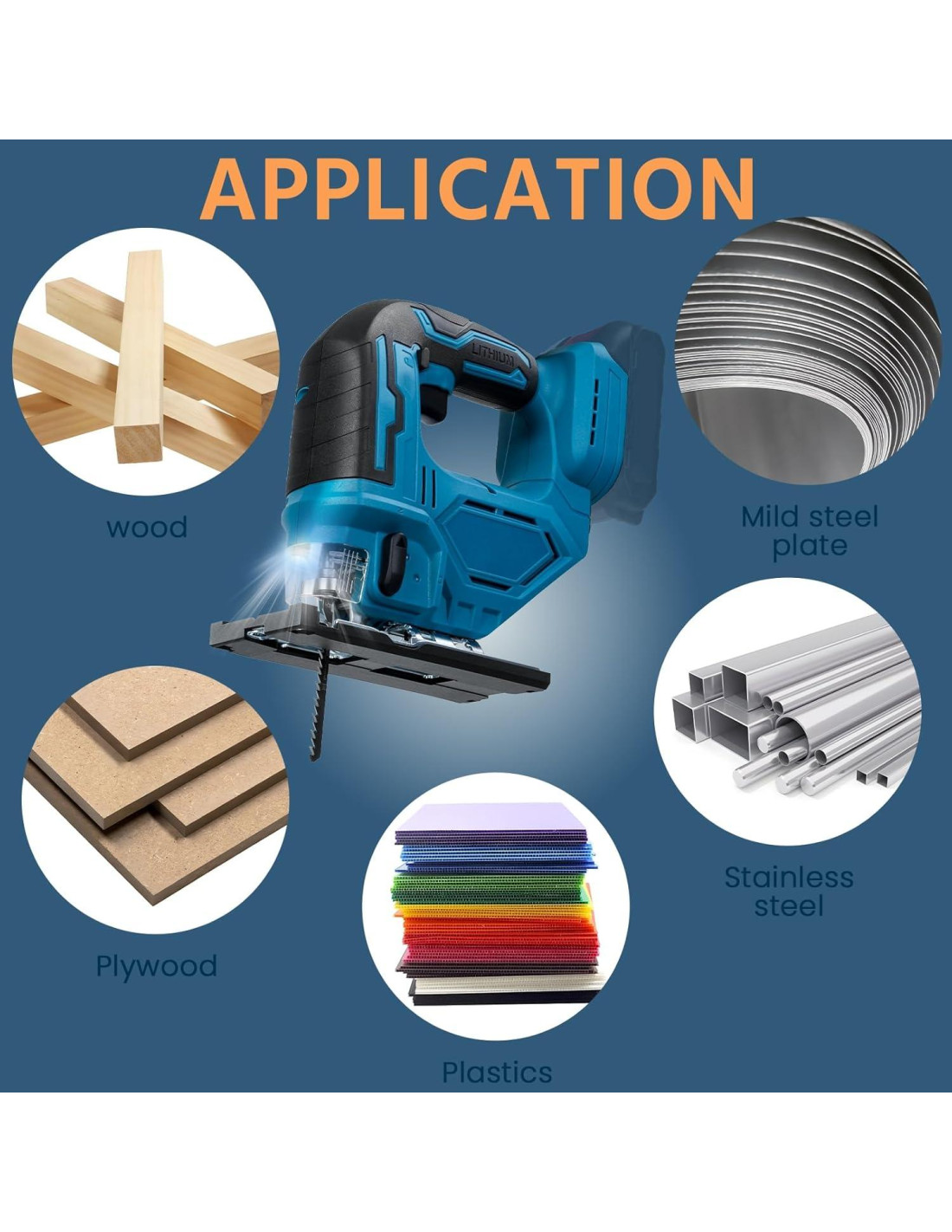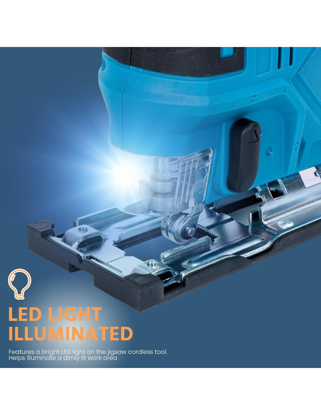 - Cubierta de polvo y luz LED: El rompecabezas inalámbrico viene con una cubierta de polvo transparente para evitar que el polvo salpique y afecte la visibilidad. Las luces LED brillantes en la herramienta de sierra de fijación ayudan a iluminar el espacio de trabajo oscuro. Te hace más claro y seguro al trabajar.