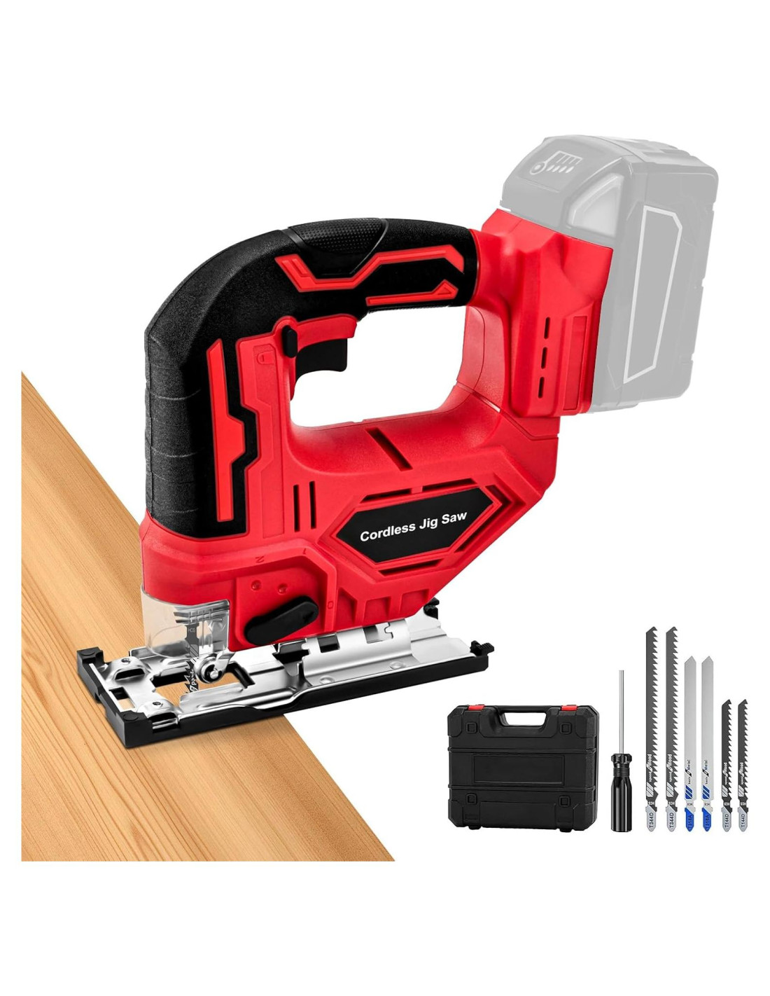 - Bloqueo de seguridad y luz LED: La herramienta de sierra de calar inalámbrica cuenta con un botón de bloqueo de seguridad incorporado que garantiza una operación segura, evitando activaciones accidentales. La luz LED ilumina su área de trabajo para precisión en condiciones de poca luz.