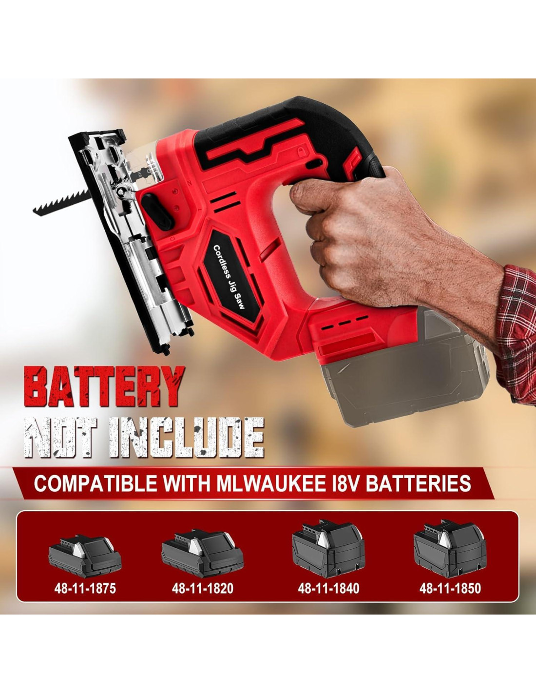 - Motor sin escobillas potente e inalámbrico: Es compatible con baterías Milwaukee de 18V, ofreciendo potencia confiable y consistente. (batería no incluida) Esta sierra de calar inalámbrica está equipada con un avanzado motor sin escobillas, proporcionando un poder de corte excepcional y extendiendo la vida útil de la herramienta. El diseño inalámbrico permite la máxima movilidad y conveniencia, facilitando su uso tanto para tareas de corte en interiores como en exteriores.