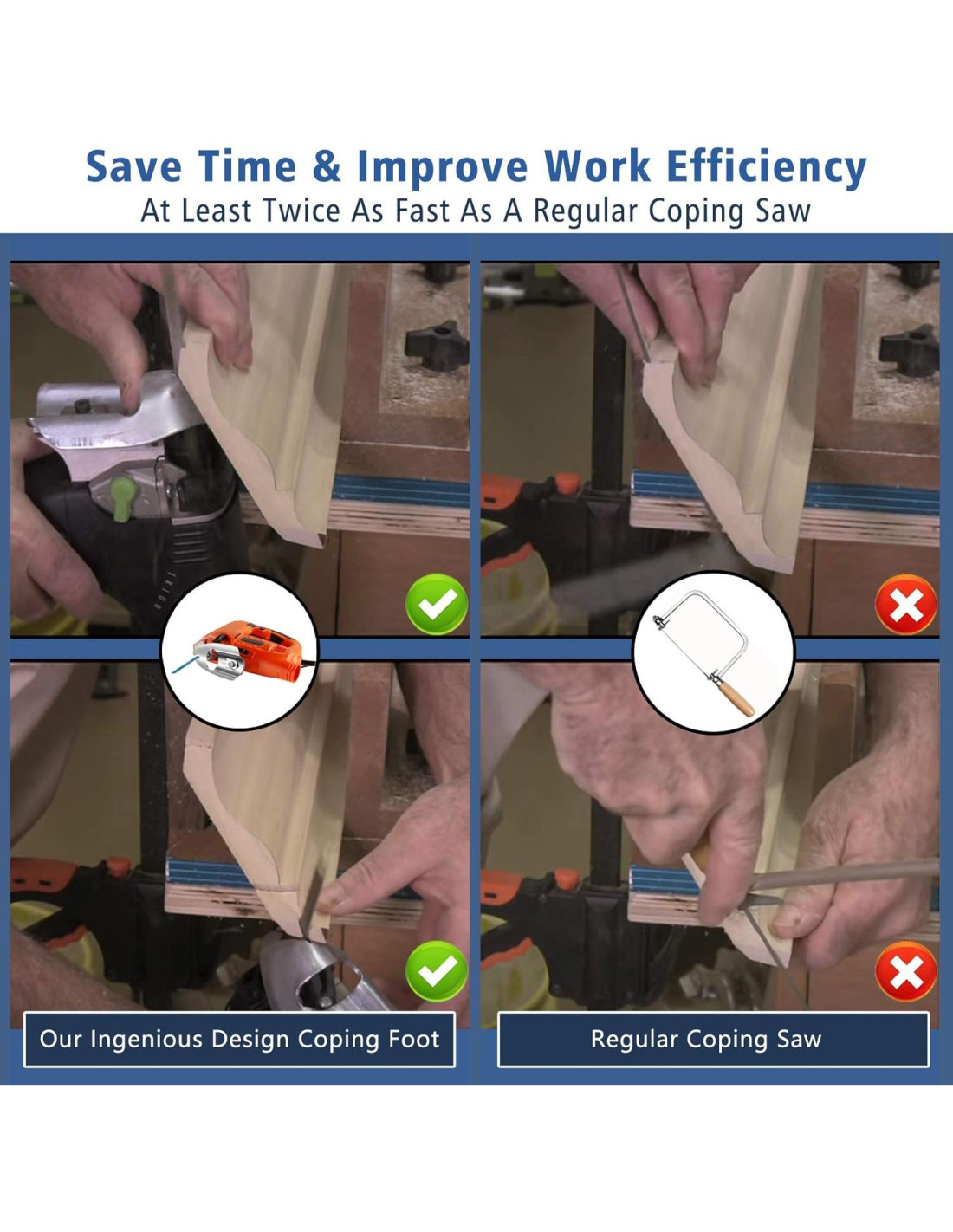 - Ajuste para la Mayoría de las Sierras de Calar: Nuestros Herramientas de Copia se ajustan a la mayoría de las sierras de calar excepto para Porter-Cable, y las Bosch 1590 y 1591. Se requiere una sierra de calar de velocidad variable para cualquier moldura curva y supera la copia manual perfectamente.