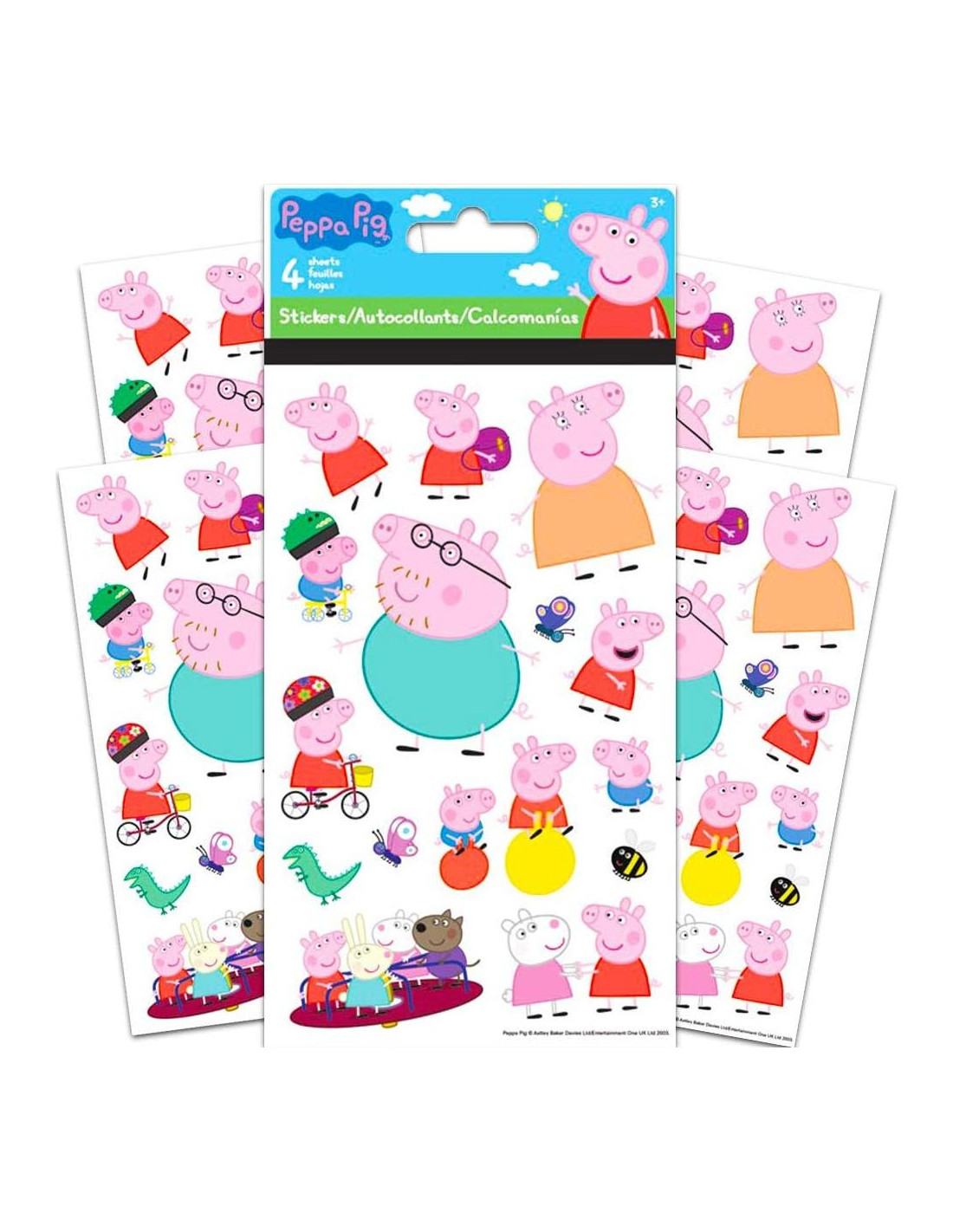 Cuatro hojas de calcomanías con tus personajes licenciados favoritos. Genial para regalos de fiesta, aulas, guarderías o para recompensar a tu hijo.