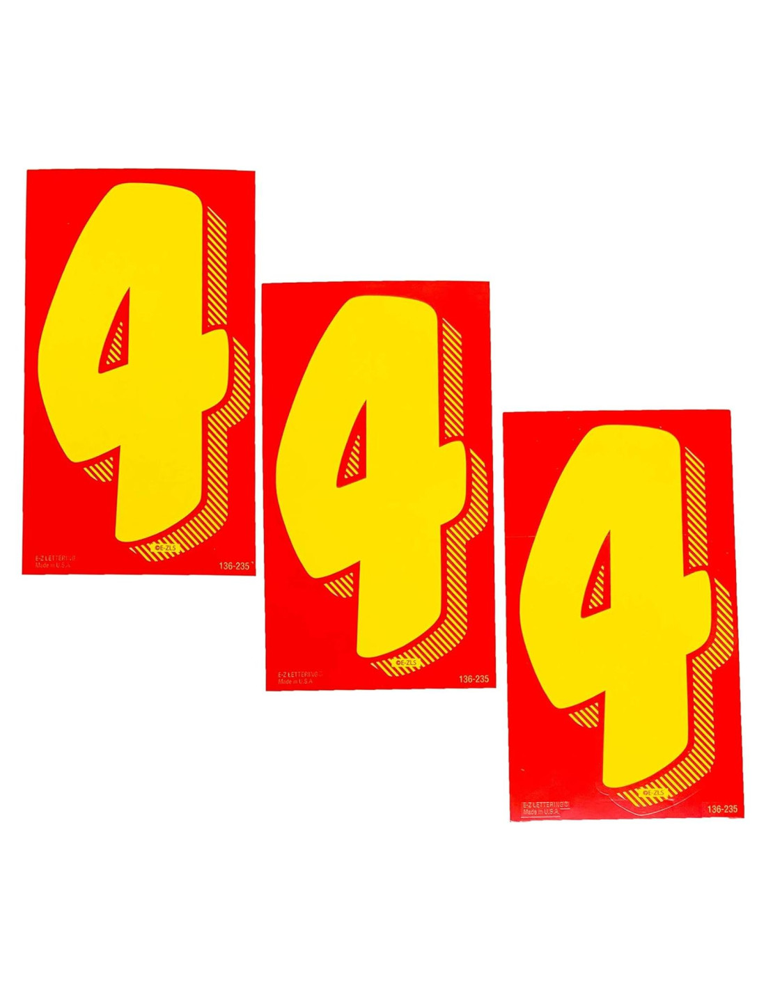 Las calcomanías originales para ventanas de autos. Los productos EZ Line son el estándar del mercado para suministros de concesionarios de autos. Fabricando calcomanías para autos desde 1959. Elige suministros de concesionario de la original, un nombre en el que puedes confiar. Números amarillos y rojos de 19.05 cm (7.5 pulgadas) de nuestra línea de calcomanías y adhesivos para autos. Números de vinilo amarillos brillantes convenientemente empaquetados en un paquete de 36 números. ¡Calcomanías de signos de dólar incluidas! Calcomanías para autos y paquetes de calcomanías para el concesionario de autos que espera las mejores calcomanías para autos. Calcomanías de números de vinilo rojo brillante sobre fondo amarillo que destacarán en tu lote de autos. Calcomanías para autos disponibles en: 0, 1, 2, 3, 4, 5, 6, 7, 8, 9, $