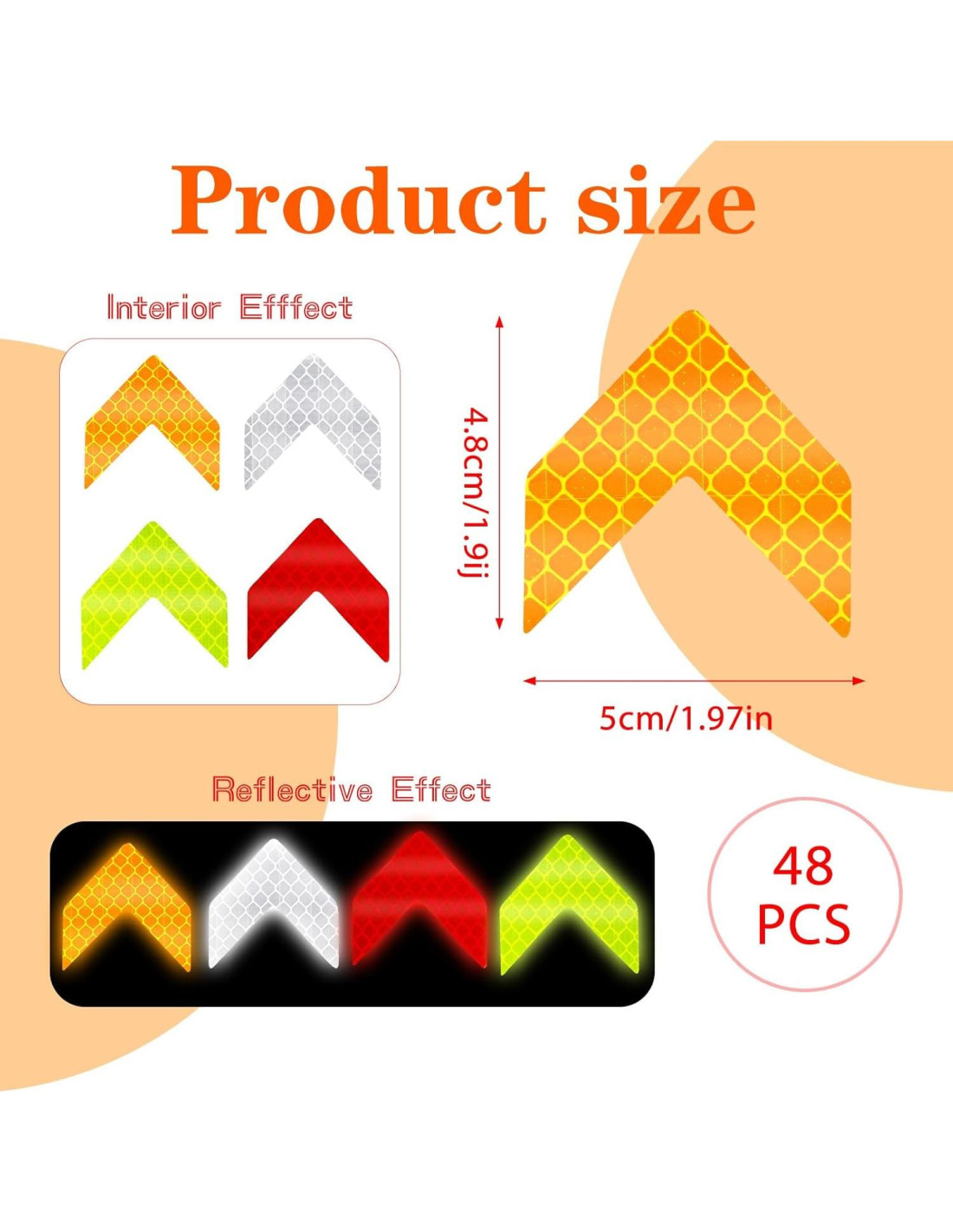 - Calcomanías de Advertencia Reflectantes de Alta Visibilidad: Mejora la seguridad con 48pcs calcomanías de flecha multicolor hechas de material PVC brillante, asegurando alta visibilidad por la noche o en condiciones de poca luz para prevenir accidentes. Ideal para cascos, vehículos, buzones y más