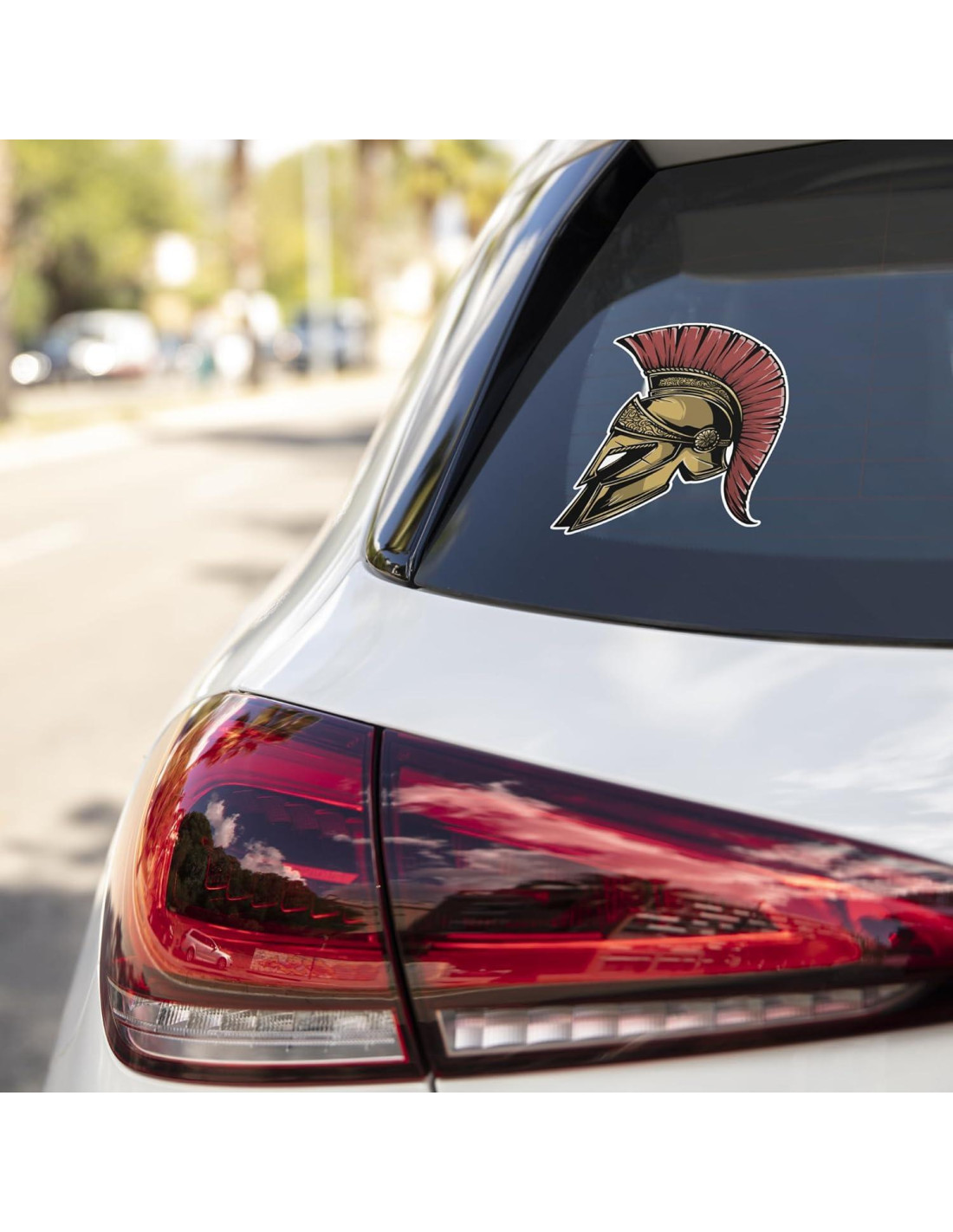 - Diseño Icónico de Casco Espartano: La calcomanía presenta una imagen impactante de un casco espartano, reflejando el coraje y habilidad del ejército espartano.