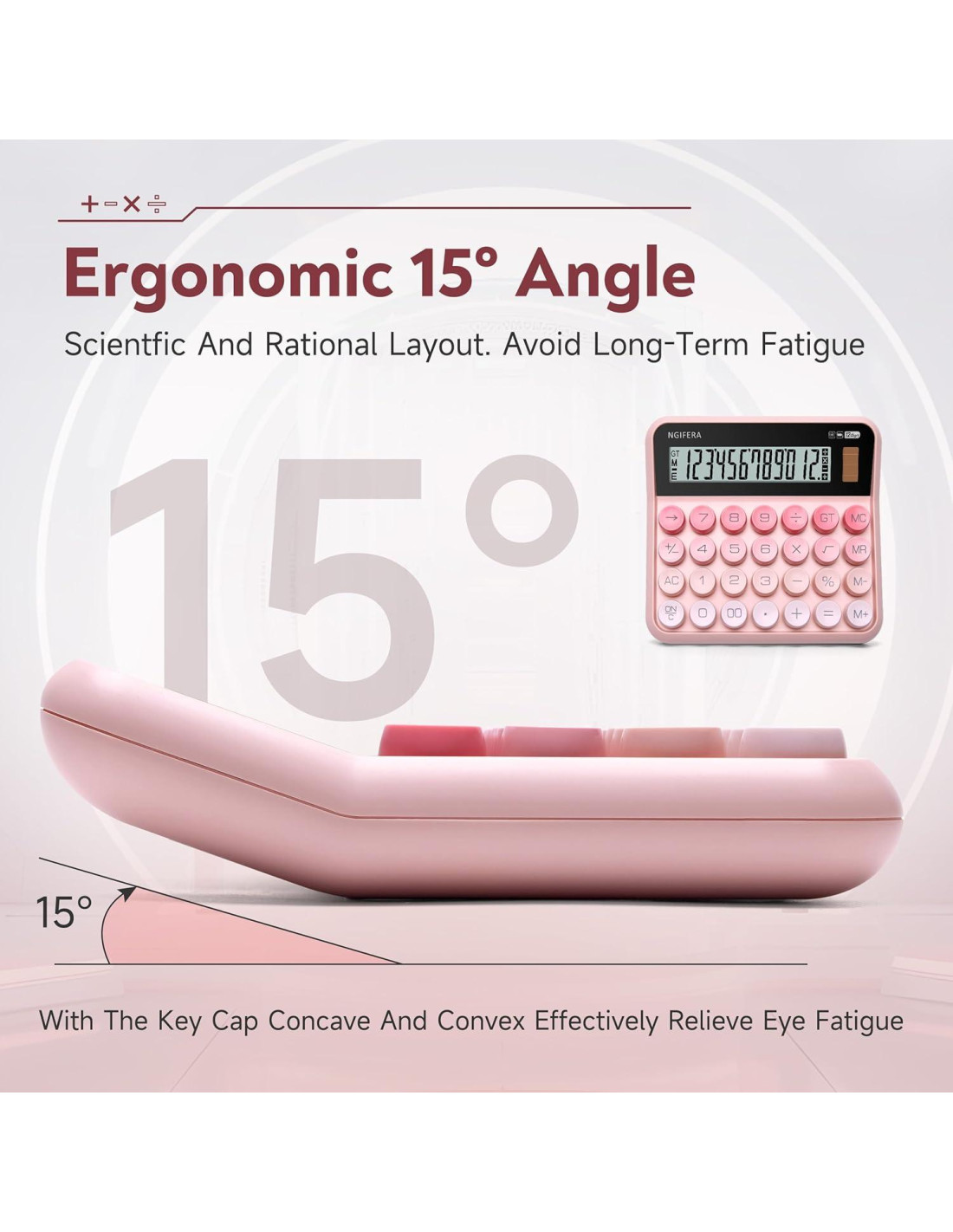 - SONIDO DE CLIC: La operación de las teclas es rápida y precisa, brindando una experiencia agradable. Al ser tocadas, las teclas producen un sonido de 'clic' adictivo. Si necesitas una calculadora silenciosa, lo siento, esta puede no ser adecuada. Diseñada como un botón grande con múltiples opciones de color disponibles. Equipado con una pantalla LCD grande, mostrando 12 dígitos y símbolos matemáticos, diseñado en un ángulo ergonómico de 15 grados para facilitar la lectura, esta calculadora de interruptor mecánico mejora la comodidad del usuario.