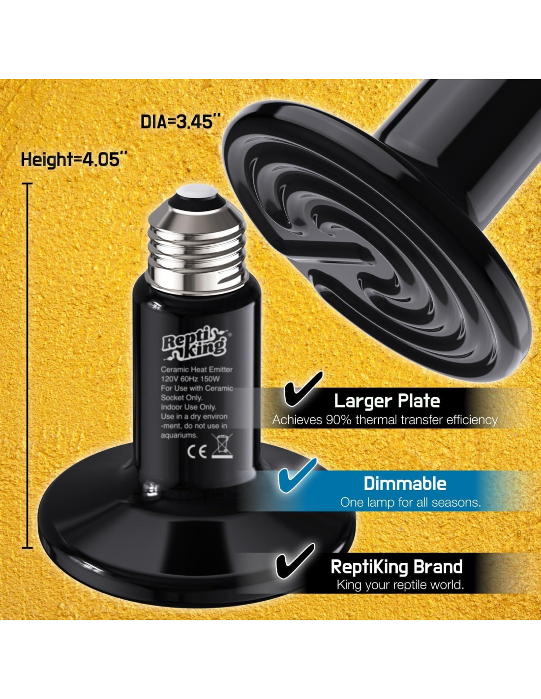 - Calentamiento Seguro 24/7 - El emisor de calor cerámico proporciona calor infrarrojo constante sin luz perturbadora, ideal para reptiles (dragones barbudos, serpientes, tortugas) y aves de corral (gallinas).
