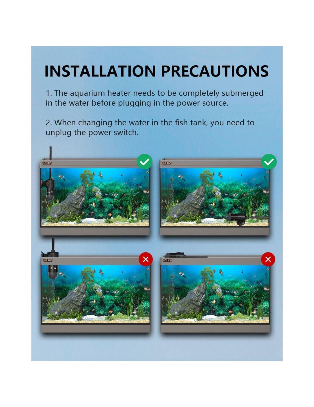 - [Vidrio a prueba de explosiones de cuarzo engrosado]: El calentador de acuario transfiere calor rápidamente, es anti-corrosión, tiene función de memoria de apagado, configuración automática al encender, sin necesidad de restablecer la temperatura.